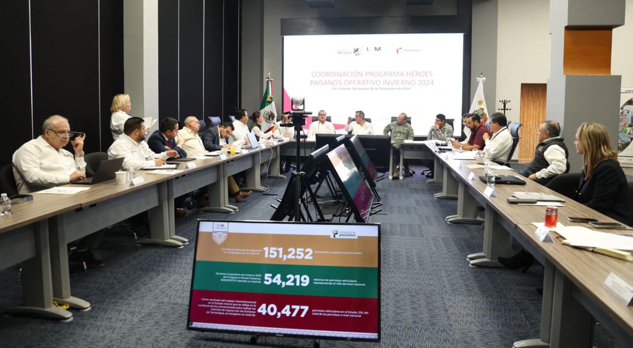Ciudad Victoria, Tamaulipas.- El Gobierno de Tamaulipas brindará todo su apoyo al Instituto Nacional de Migración (INM) como parte de la colaboración interinstitucional para el despliegue del Programa Héroes Paisanos, Operativo Invierno 2024, que se llevará a cabo del 28 de noviembre al 12 de enero, a fin de garantizar seguridad, atención y una buena estancia a las y los connacionales que ingresen o transiten por territorio tamaulipeco.