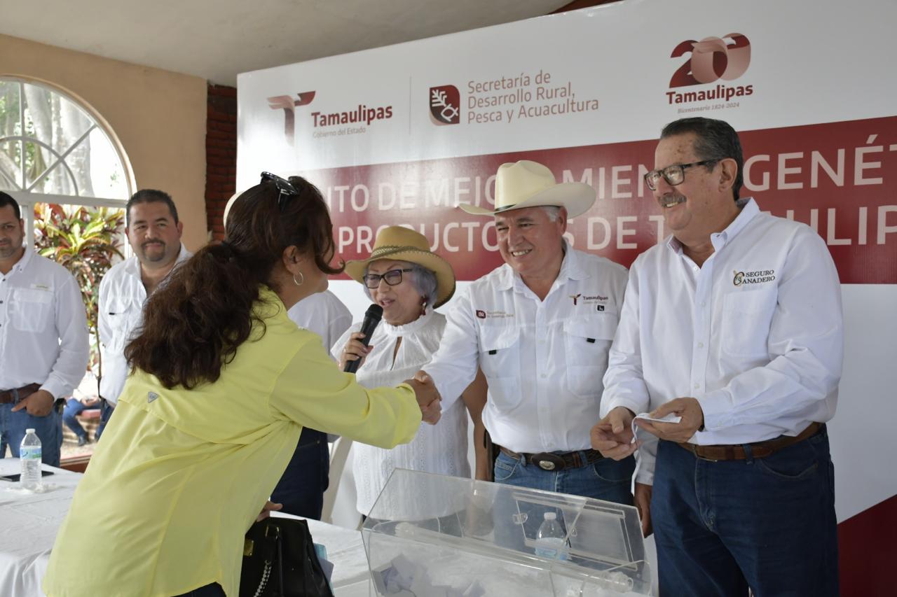 Por su parte, Liberato García Sánchez, en representación del presidente de la Unión Ganadera Regional de Tamaulipas, dijo, "es un gusto seguir apoyando la ganadería, con este importante programa que nos ha cambiado la calidad de nuestro producto de exportación, que es el becerro, en este año se destinaron más de 14 millones de pesos para la adquisición de 640 sementales bovinos, además de los presupuestos autorizados para los temas de seguimiento de sanidad animal, con la finalidad de disminuir los índices de tuberculosos y mejorar el estatus zoosanitario del estado".