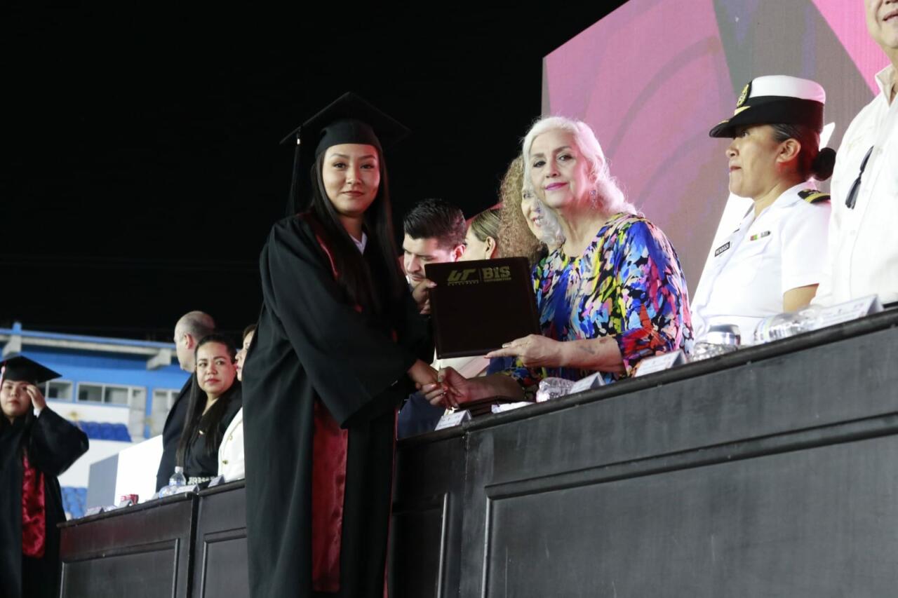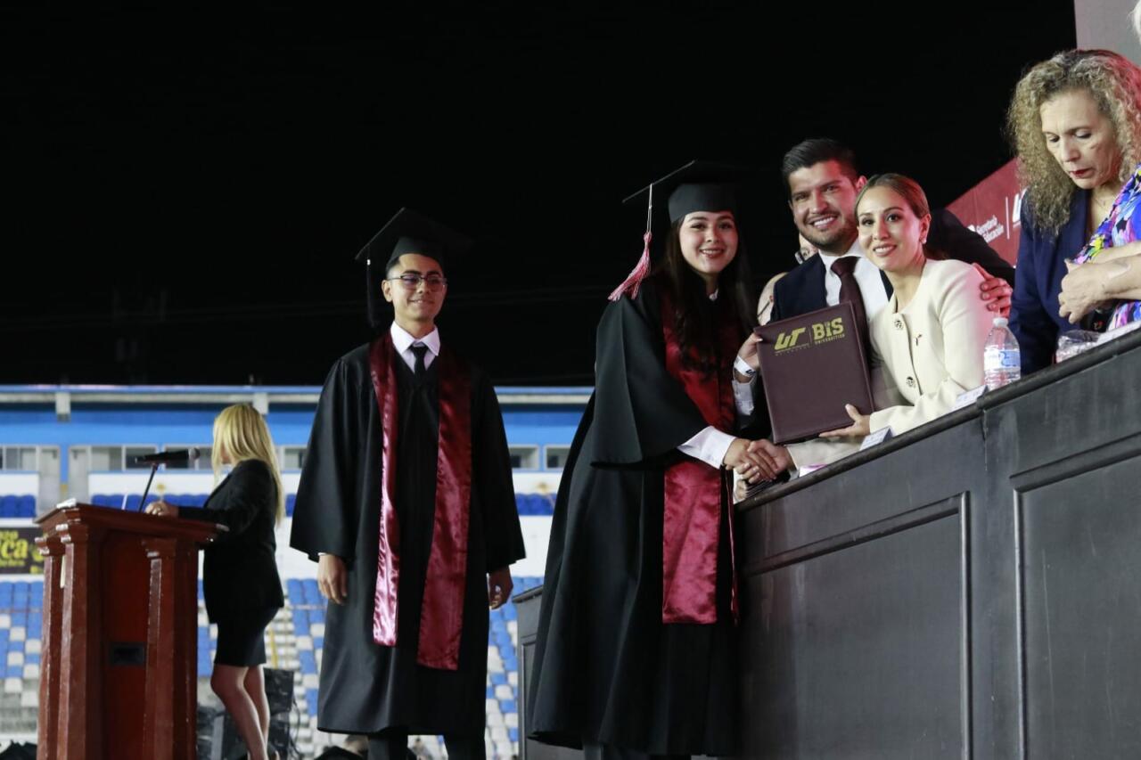 En ceremonia efectuada en el estadio de fútbol del equipo Gavilanes, más de 7 mil personas presenciaron la graduación de la Generación 2024 de la UTM, en donde más de mil 200 estudiantes recibieron su título profesional que los avala como Técnico Superior Universitario, Licenciados e Ingenieros.