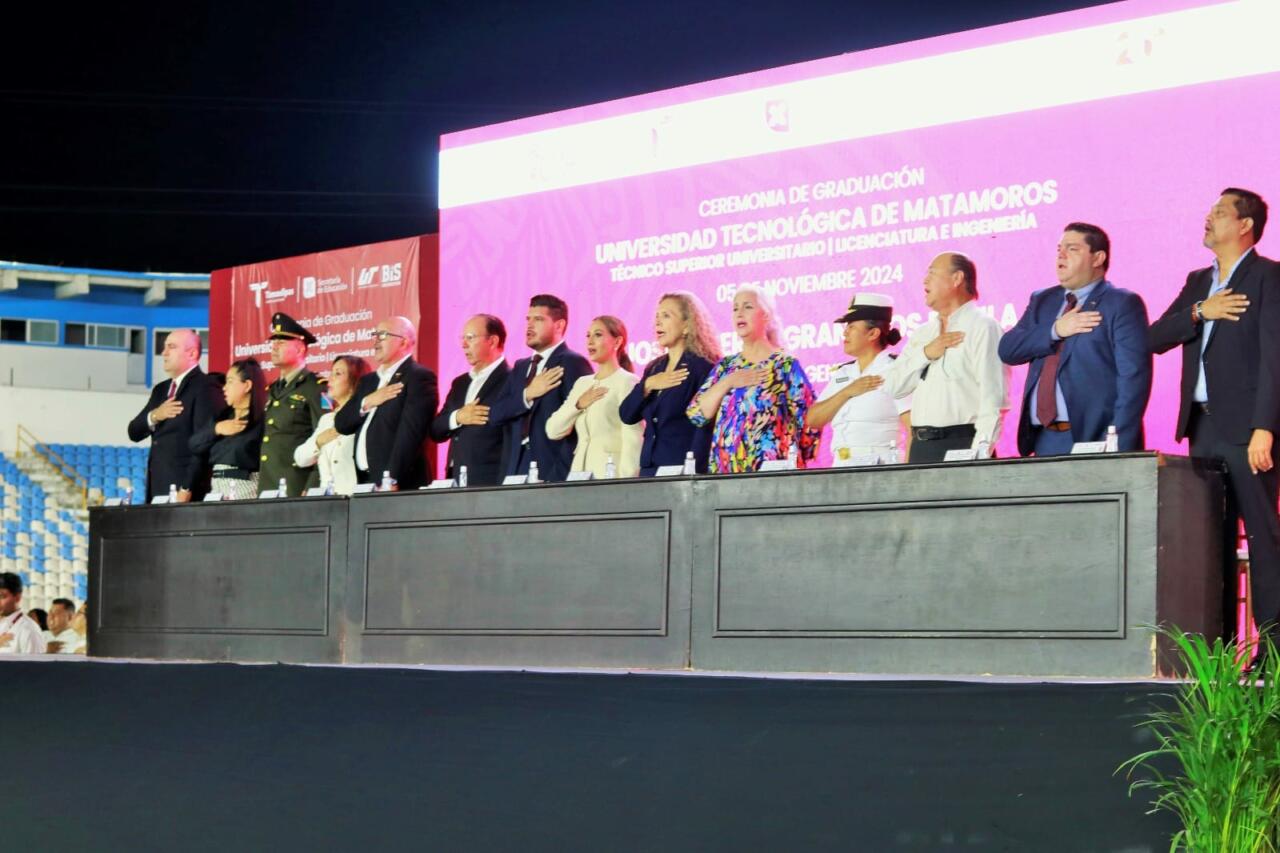 “Es un día que quedará grabado en nuestra memoria, puesto que, por primera vez en la historia de la Universidad Tecnológica de Matamoros, nuestros estudiantes reciben sus títulos en tiempo y forma”, afirmó.