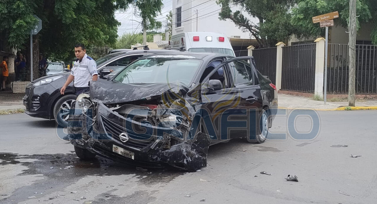 El accidente en el cual se vieron involucrados dos automóviles de la marca Nissan ocurrió esta tarde de domingo en el crucero del 18 Zaragoza.