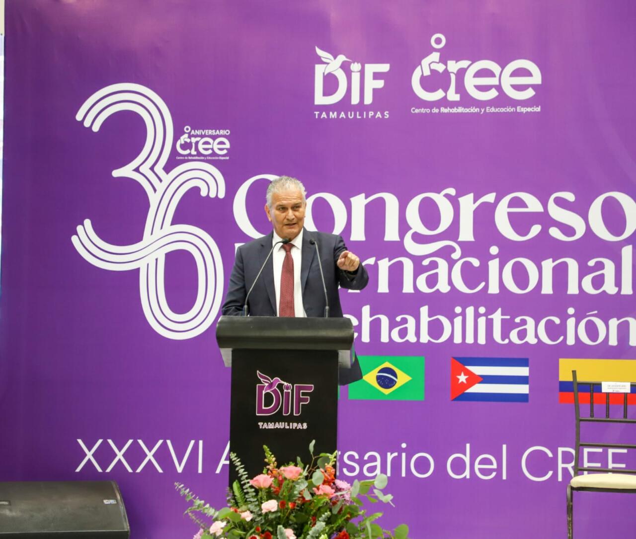 Ciudad Victoria, Tamaulipas.-El secretario de Salud, Vicente Joel Hernández Navarro, asistió al Primer Congreso Internacional en Terapia Física y Autismo, organizado por el Centro de Rehabilitación y Educación Especial (CREE) que a la par de celebrar 36 años de servicio, realiza este evento anual que por primera vez se convierte en internacional.