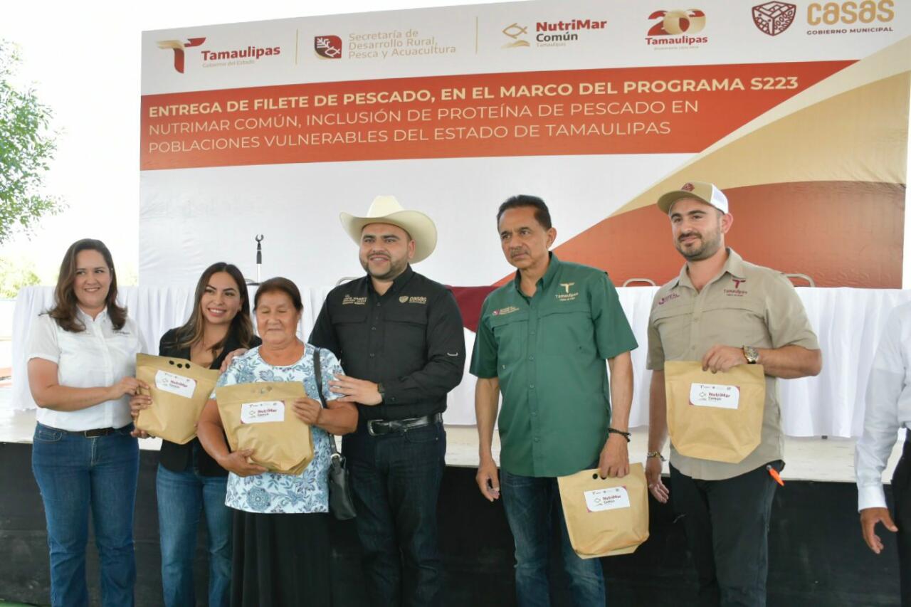 Villa de Casas, Tamaulipas. – El Gobierno del Estado en coordinación con el Sistema DIF Estatal, Bienestar y el municipio de Villa de Casas, beneficia a familias que viven en situación de vulnerabilidad, a través programa Nutrimar-Común, que tiene como objetivo promover una adecuada alimentación, contribuye al desarrollo y al bienestar de las familias mediante la entrega de filete de pescado, con ello se busca mejorar la seguridad alimentaria de Tamaulipas.