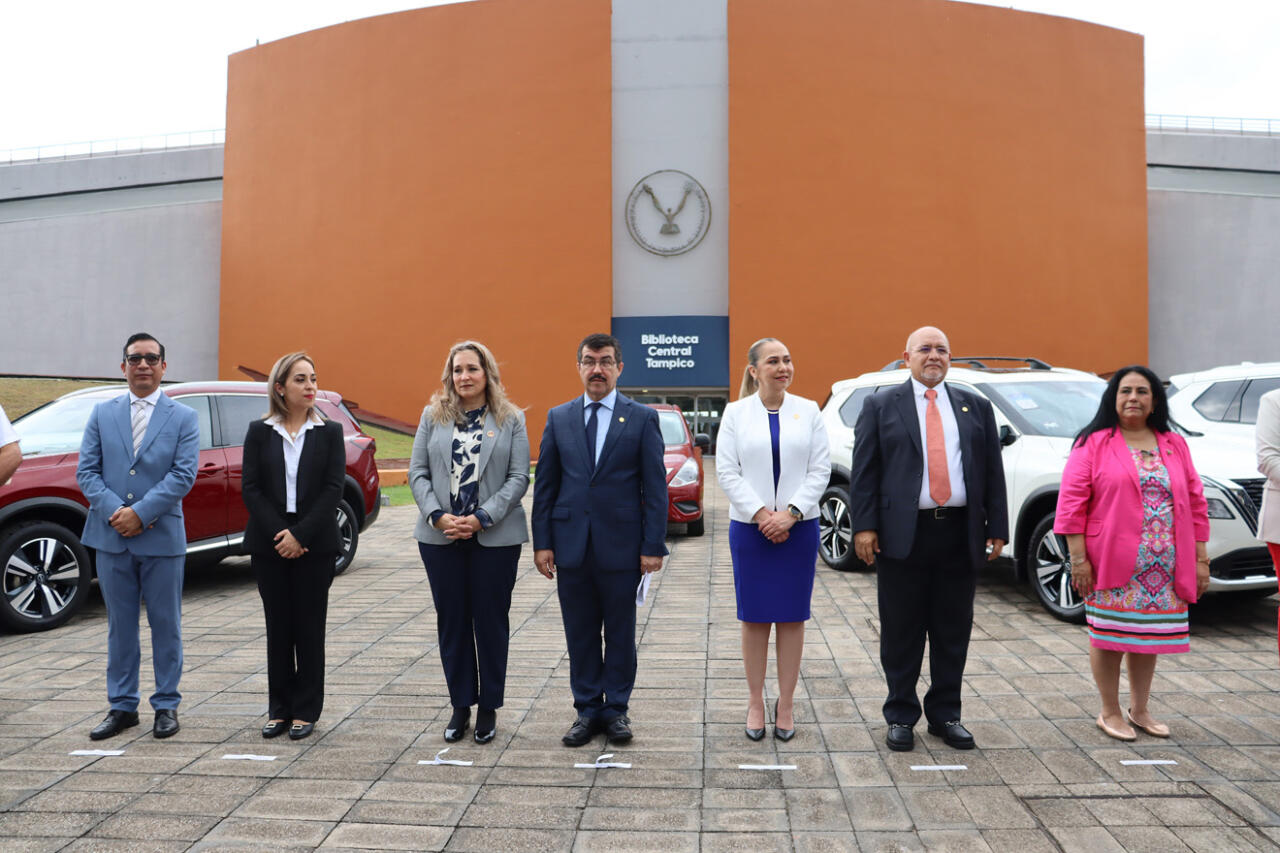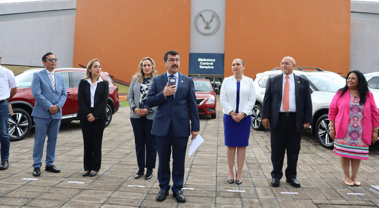 El rector de la Universidad Autónoma de Tamaulipas (UAT), Dámaso Anaya Alvarado, presidió en el Campus Tampico la entrega de vehículos a cada una de las facultades de la zona sur, así como equipamiento para la protección y seguridad de la comunidad universitaria.