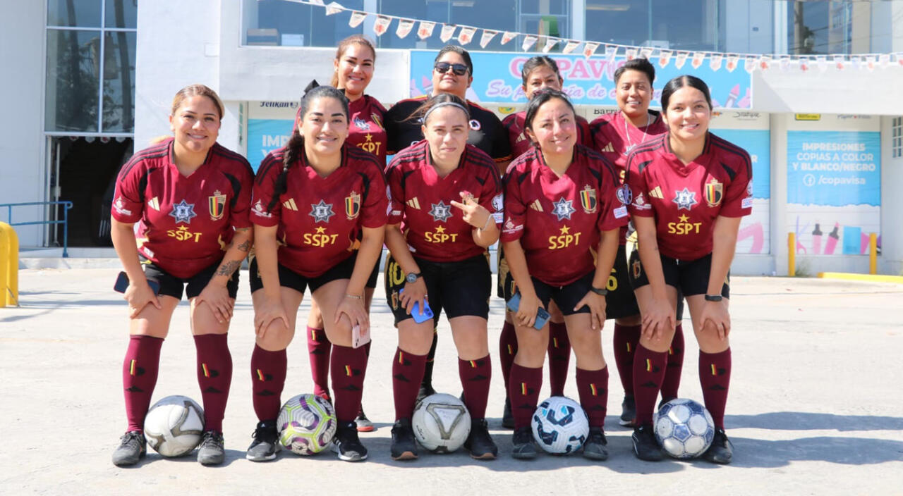 En otra muestra de la equidad de género que rige la SSPT, el conjunto femenil de fútbol, actual campeón de la Copa Gobernador dio muestra de sus habilidades deportivas.