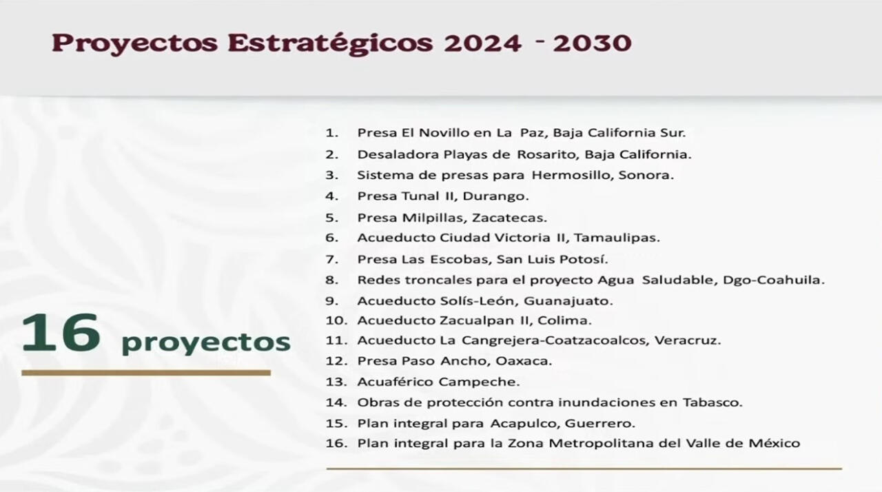 “Como parte de este plan vamos a realizar obras de infraestructura en todo el país, estamos trabajando ya con estados y municipios en la elaboración de un plan maestro. Hemos revisado el estado que guarda la infraestructura y también la necesidad que se tiene para desarrollar nuevos proyectos”, dijo.