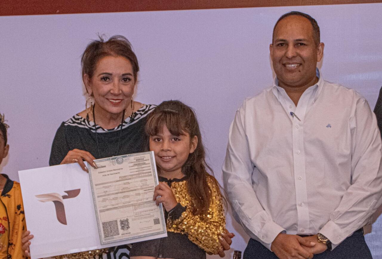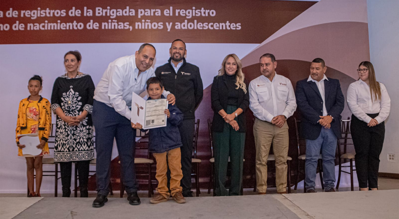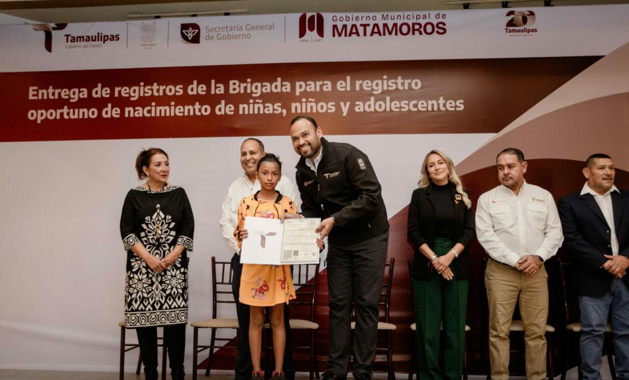 Matamoros, Tamaulipas.- Con el objetivo de garantizar el acceso a los derechos fundamentales de las y los ciudadanos, se llevó a cabo en Matamoros, la entrega simbólica de registros de nacimiento como parte de la Brigada de Registro Civil para el Registro Oportuno de Nacimiento de Niñas, Niños, Adolescentes y Adultos Mayores.