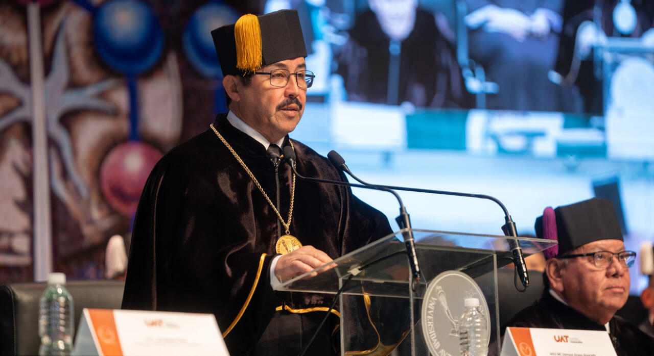 Dámaso Anaya destacó que este homenaje es testimonio del espíritu humanista que dirige a la UAT, resaltando que no solo se busca formar profesionistas, sino también líderes comprometidos con el bienestar de la sociedad y el desarrollo de Tamaulipas.