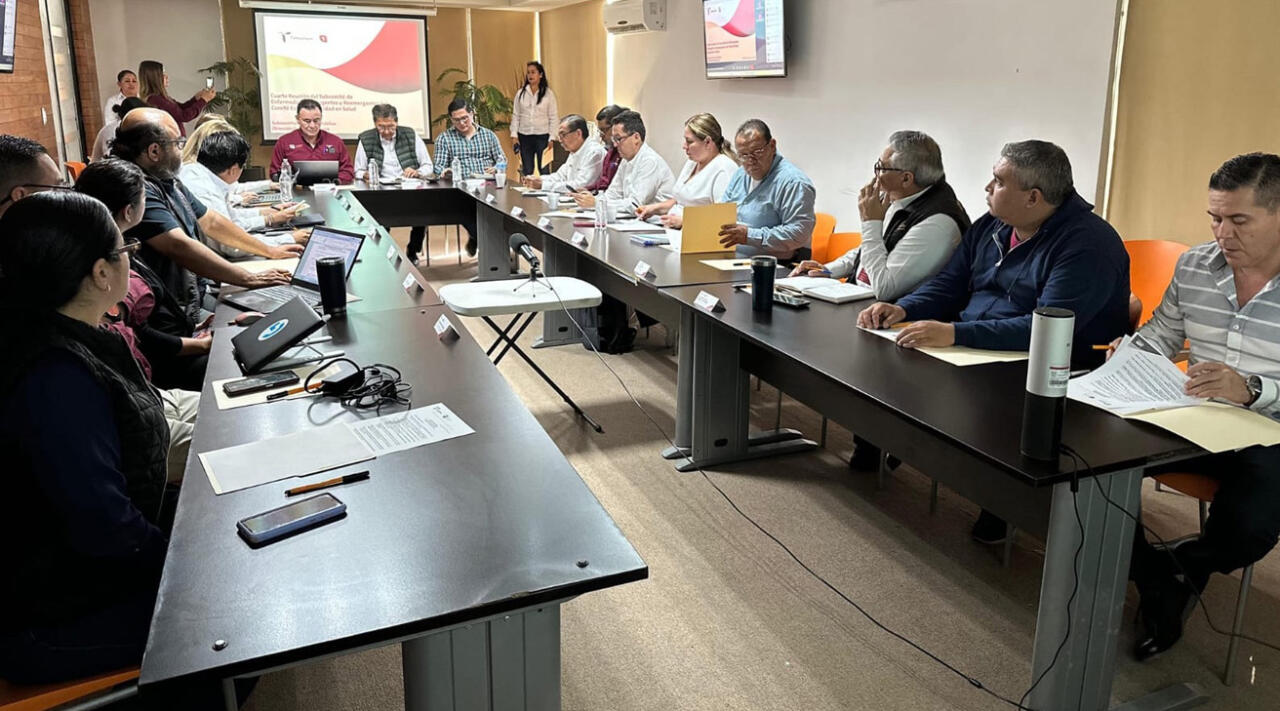 Esta cuarta sesión ordinaria del Subcomité de Enfermedades Emergentes y Reemergentes del Comité Estatal de Seguridad en Salud, se llevó a cabo en las instalaciones de la dependencia estatal y se contó con la asistencia del director de Epidemiología, Sergio Uriegas Camargo; el coordinador Estatal del Servicio Nacional de Salud Pública, Raúl Ernesto Huidobro Guevara; la directora del Laboratorio Estatal de Salud Pública, Norma Alicia Villarreal Reyes, así como los representantes del Sector Salud, COEPRIS y de manera virtual las jurisdicciones sanitarias y unidades hospitalarias.