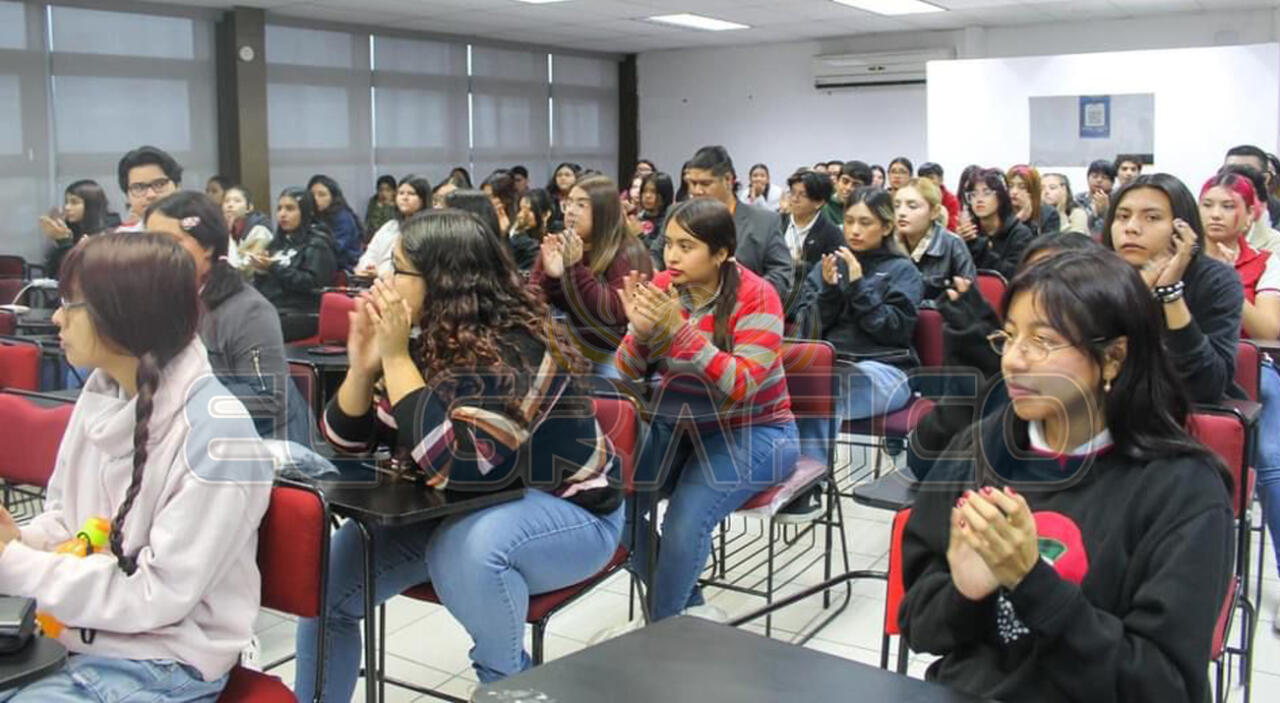En dicha conferencia estuvieron presentes los estudiantes de la Lic. en Psicología en compañía de la Directora de la Facultad de Ciencias de la Conducta y Educación, Violeta García.