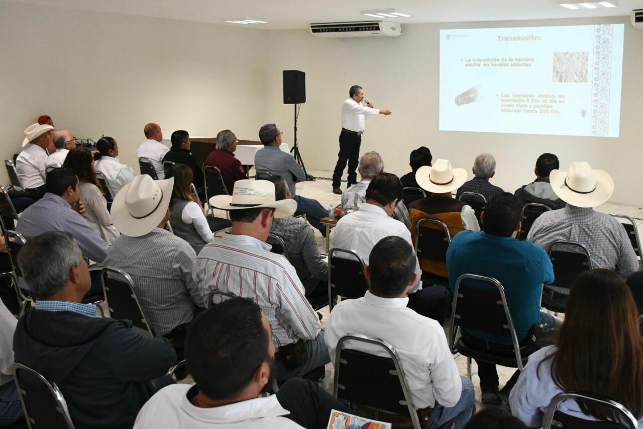 Ciudad Victoria, Tamaulipas.- El Gobierno del Estado, a través de la Secretaría de Desarrollo Rural, Pesca y Acuacultura, en coordinación con la Unión Ganadera Regional de Tamaulipas y el Servicio Nacional de Sanidad, Inocuidad y Calidad Agroalimentaria (SENASICA), llevó a cabo una capacitación con el objetivo de reforzar las acciones para la prevención del gusano barrenador en Tamaulipas.