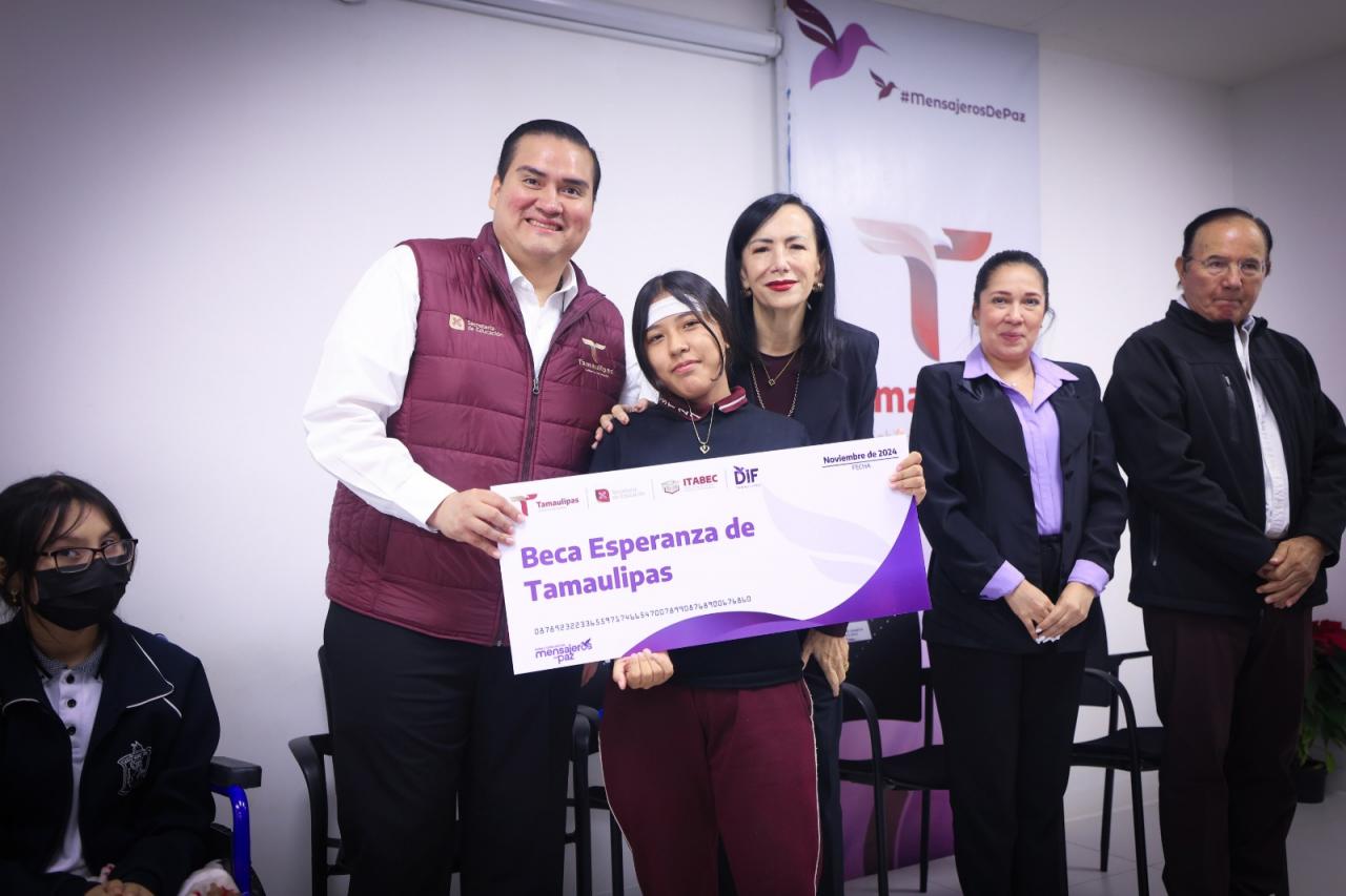 Ciudad Victoria, Tamaulipas.- A fin de garantizar el acceso a la educación de las niñas, niños y jóvenes tamaulipecos en situación de vulnerabilidad y contribuir con la disminución de la deserción escolar, el Sistema DIF Tamaulipas presidido por la doctora María de Villarreal, y el Instituto Tamaulipeco de Becas, Estímulos y Créditos Educativo (ITABEC), iniciaron la entrega de becas a estudiantes en los 43 municipios.