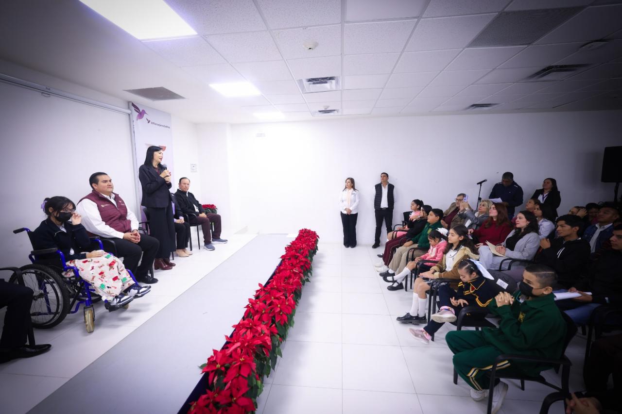 “De parte de la doctora María, las felicito a todas y todos ustedes y a sus familias, y es un gusto participar aquí en este día de mucha felicidad y que todo esto sea para bien de ustedes, que les sirva de apoyo para seguir adelante y que les permita brillar mucho más en donde estén”, dijo la directora general del DIF Estatal, Patricia Lara Ayala.