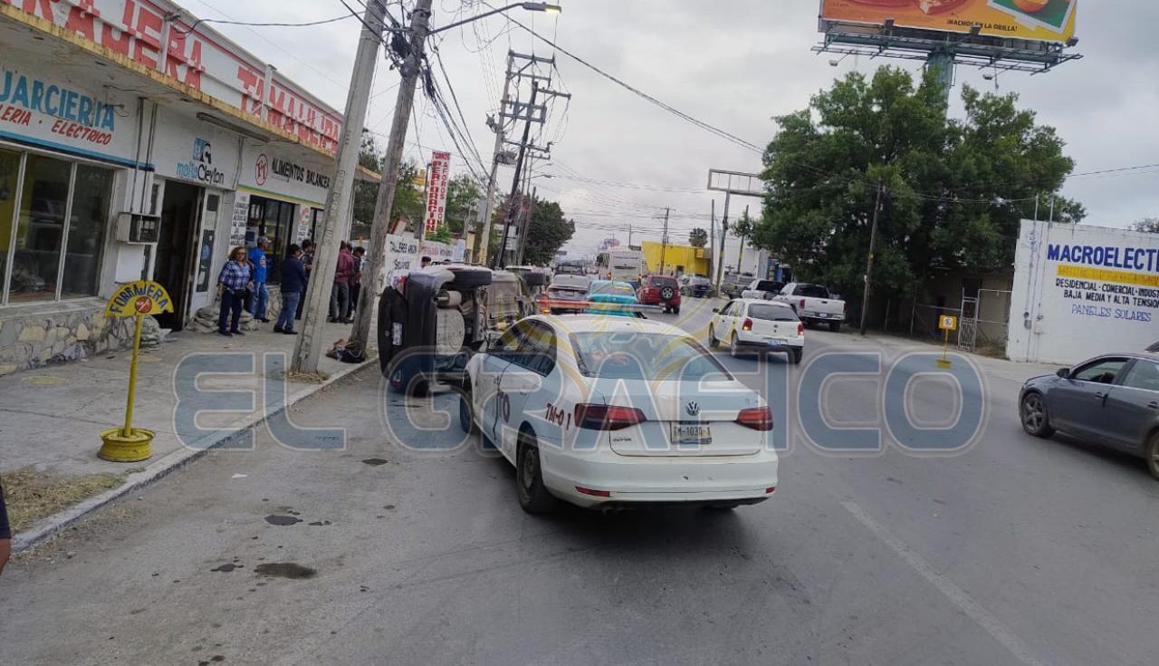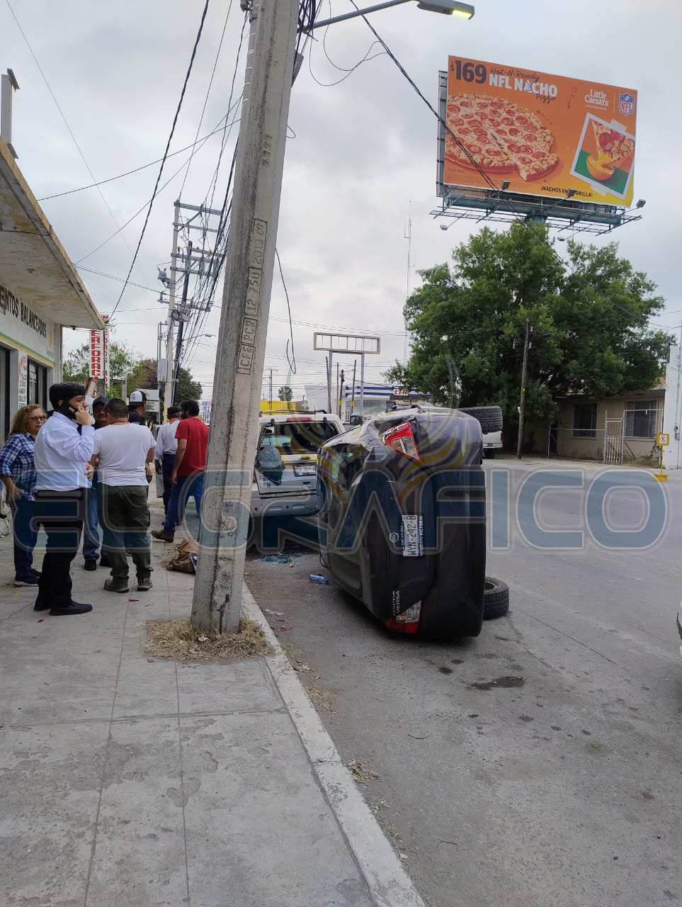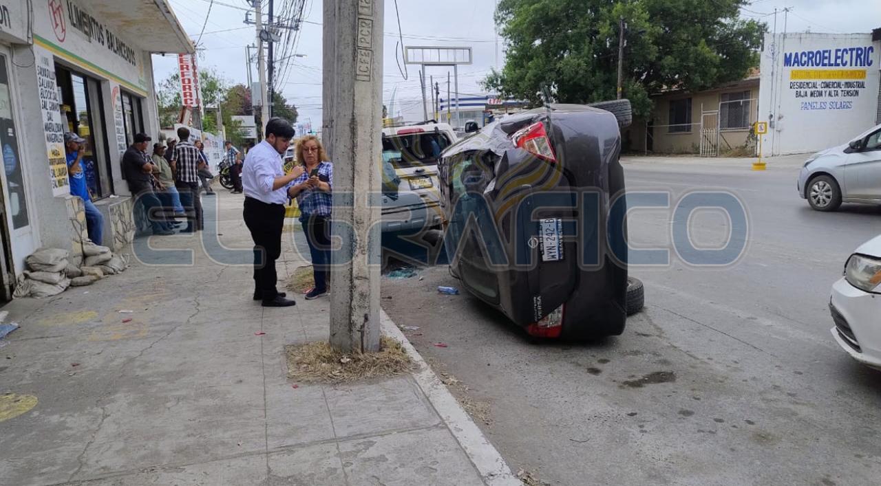 Fue en el Uno y Dos Alberto Carrera Torres, afuera de una forrajera, el lugar en donde quedó volcado sobre uno de sus costados un automóvil Nissan Versa con placas de Tamaulipas.