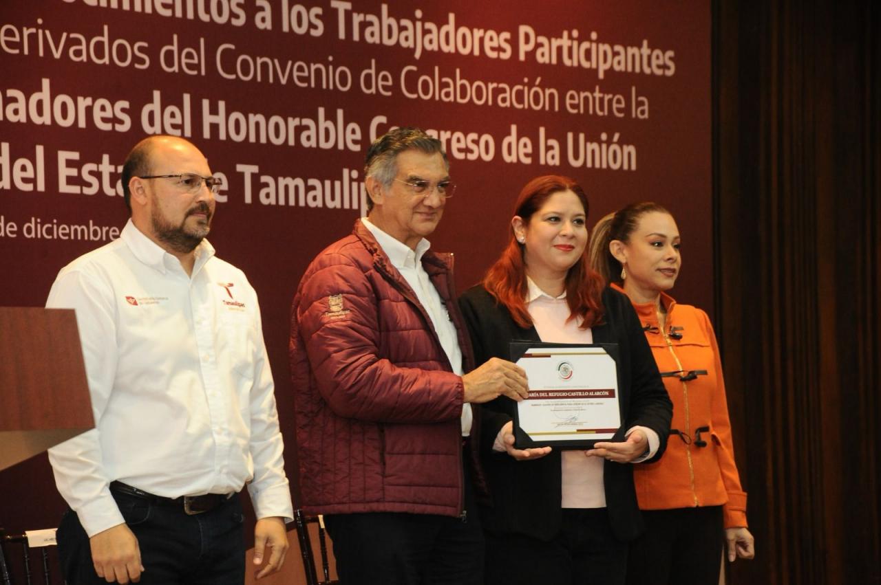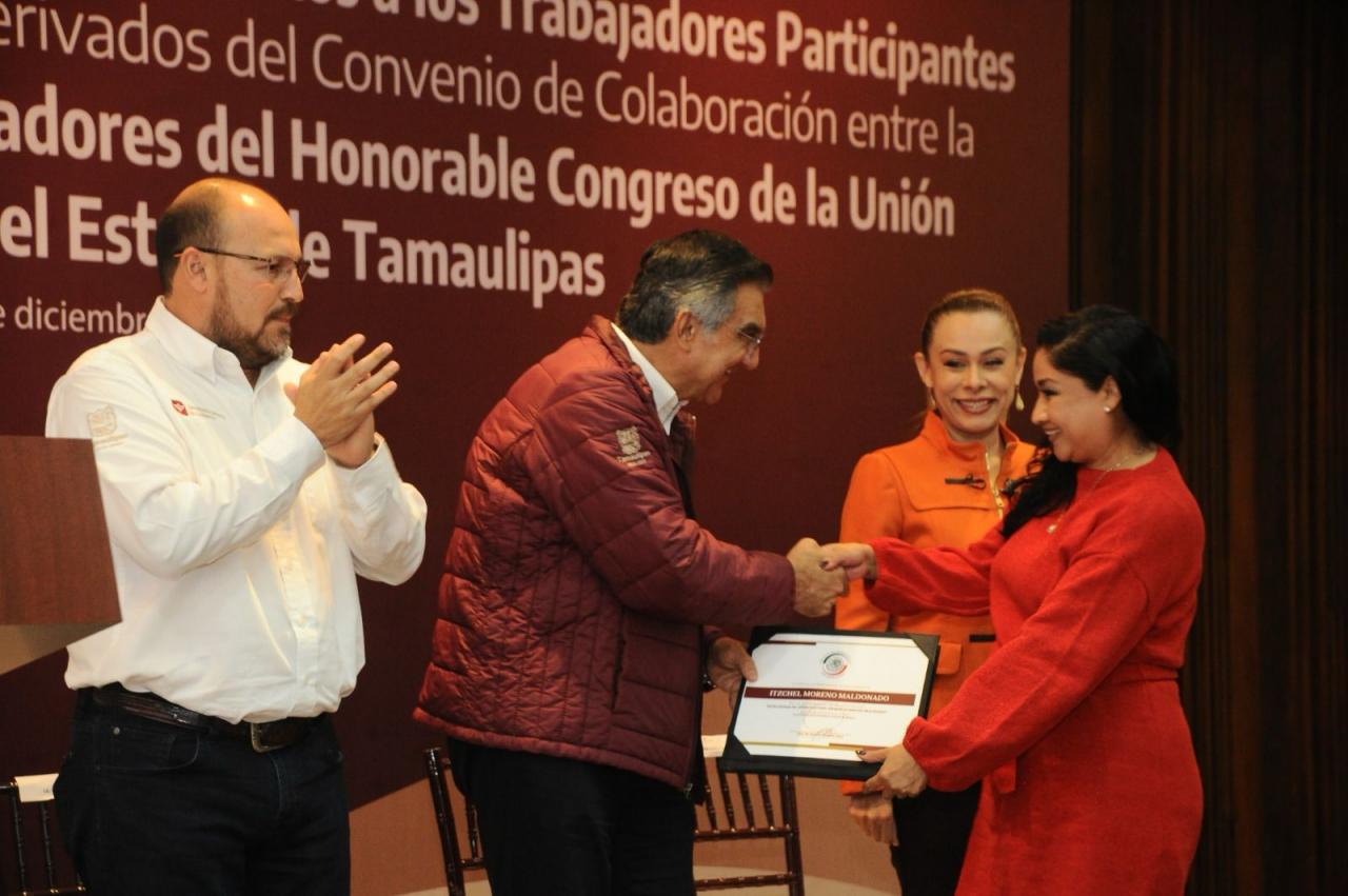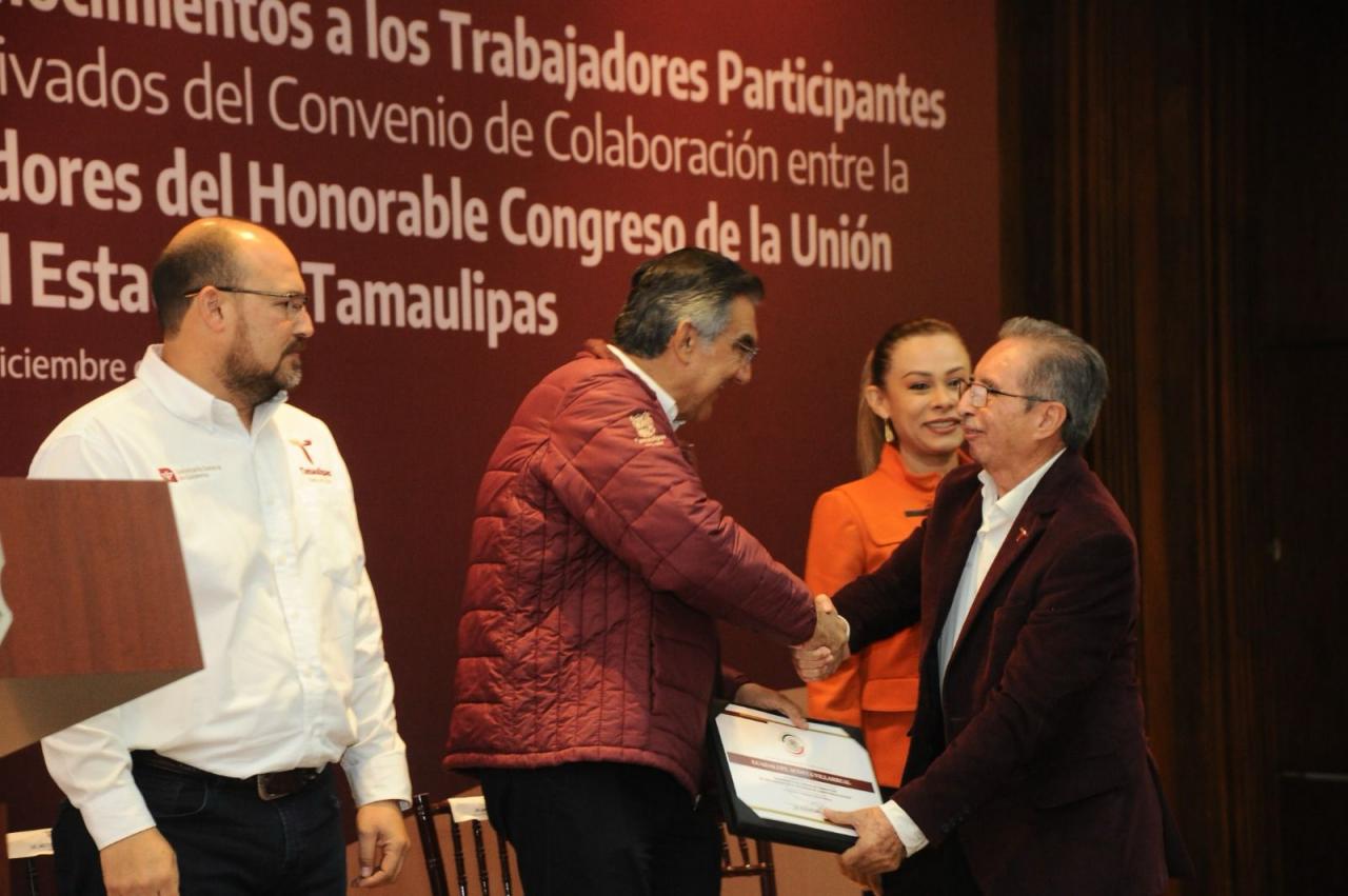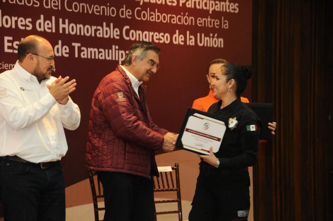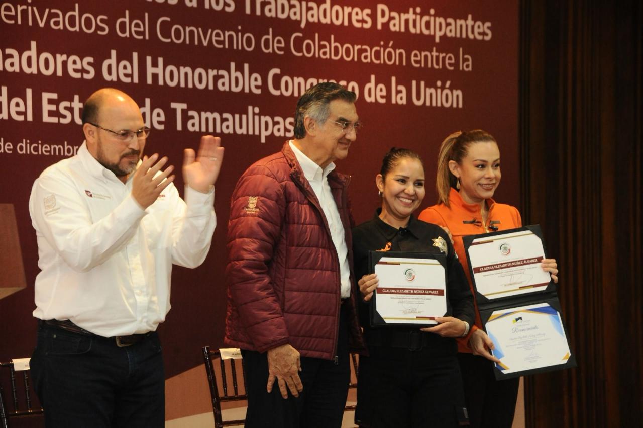 Ciudad Victoria, Tamaulipas.- Al señalar que es prioridad para su gobierno que las y los servidores públicos se capaciten de manera continua, el gobernador de Tamaulipas, Américo Villarreal Anaya, hizo entrega de 59 reconocimientos a personal de diferentes secretarías que concluyeron cursos de capacitación derivados del Convenio de Colaboración entre la Cámara de Senadores del Congreso de la Unión y el Gobierno de Tamaulipas.