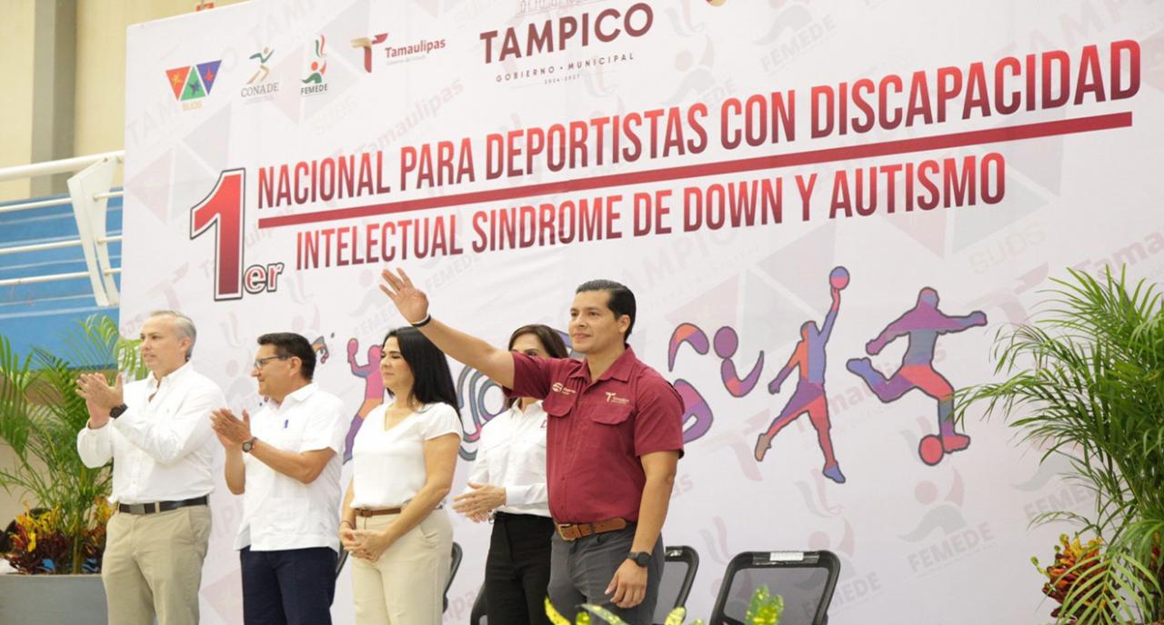 Tampico, Tamaulipas.- En el marco del Día Internacional de las Personas con Discapacidad, el director del Instituto del Deporte de Tamaulipas y la presidenta municipal de Tampico, Mónica Zacil Villarreal Anaya encabezaron la inauguración del 1er. Nacional para Deportistas con Discapacidad Intelectual, Síndrome de Down y Autismo, evento que reúne a cientos de atletas provenientes de distintos estados de la República.