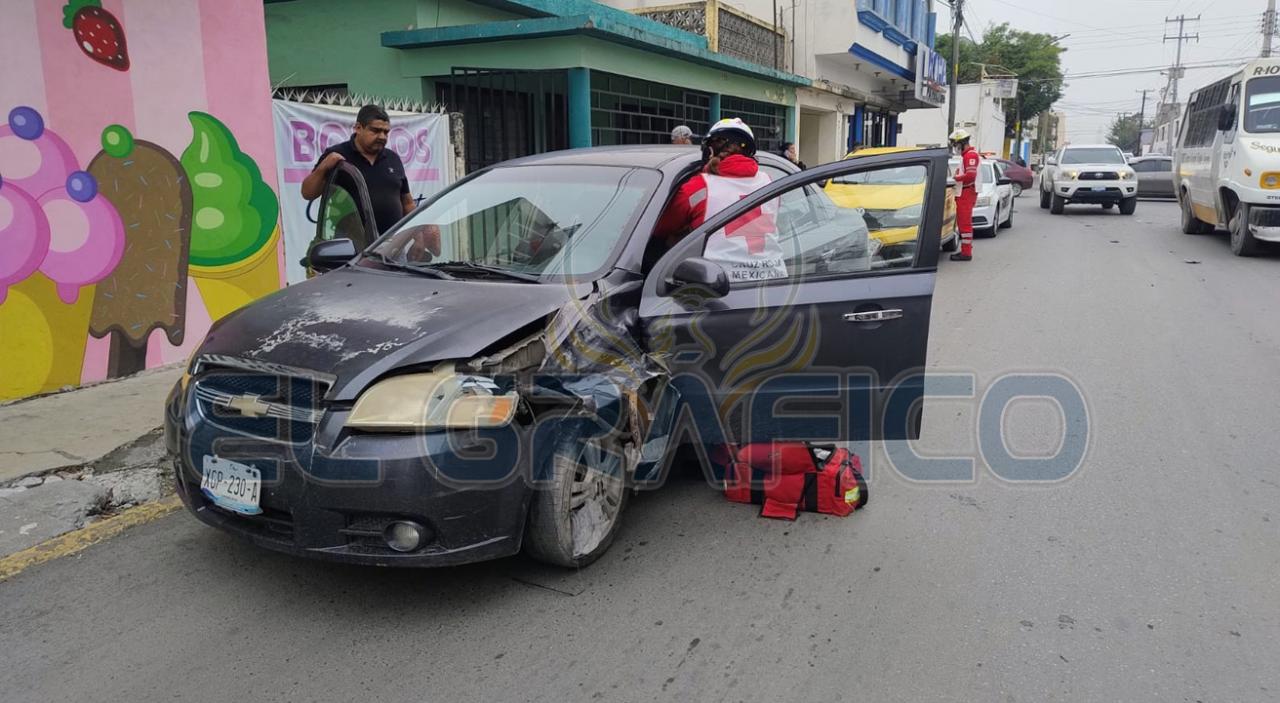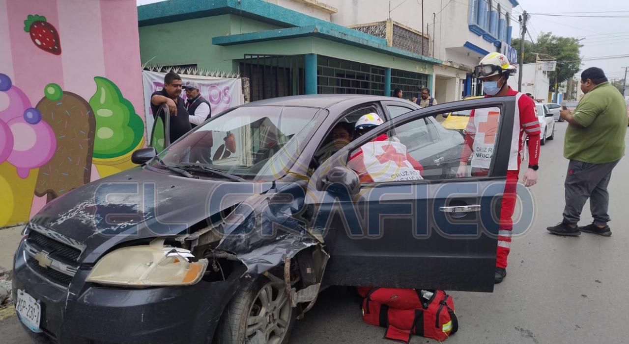 Al llegar al crucero con la calle Nueve, la conductora del vehículo Cross Fox excedió el límite de alto y se impactó contra un automóvil de la marca Chevrolet tipo Aveo que circulaba en sentido de norte a sur con preferencia de paso.