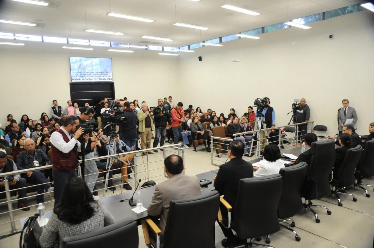 Ciudad Victoria, Tamaulipas.- En un diálogo abierto con estudiantes, académicos y miembros de colegios de profesionistas, los integrantes de los tres Comités de Evaluación para la Elección del Poder Judicial de Tamaulipas llamaron a participar en esta reforma histórica que por primera vez brinda en igualdad de condiciones una oportunidad a todas y todos los ciudadanos que son licenciados en derecho.