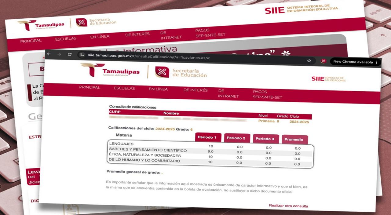 Las madres, padres o tutores pueden acceder a las calificaciones a través del SIIE en la página web oficial de la Secretaría de Educación de Tamaulipas https://siie.tamaulipas.gob.mx/ConsultaCalificacion/Calificaciones.aspx