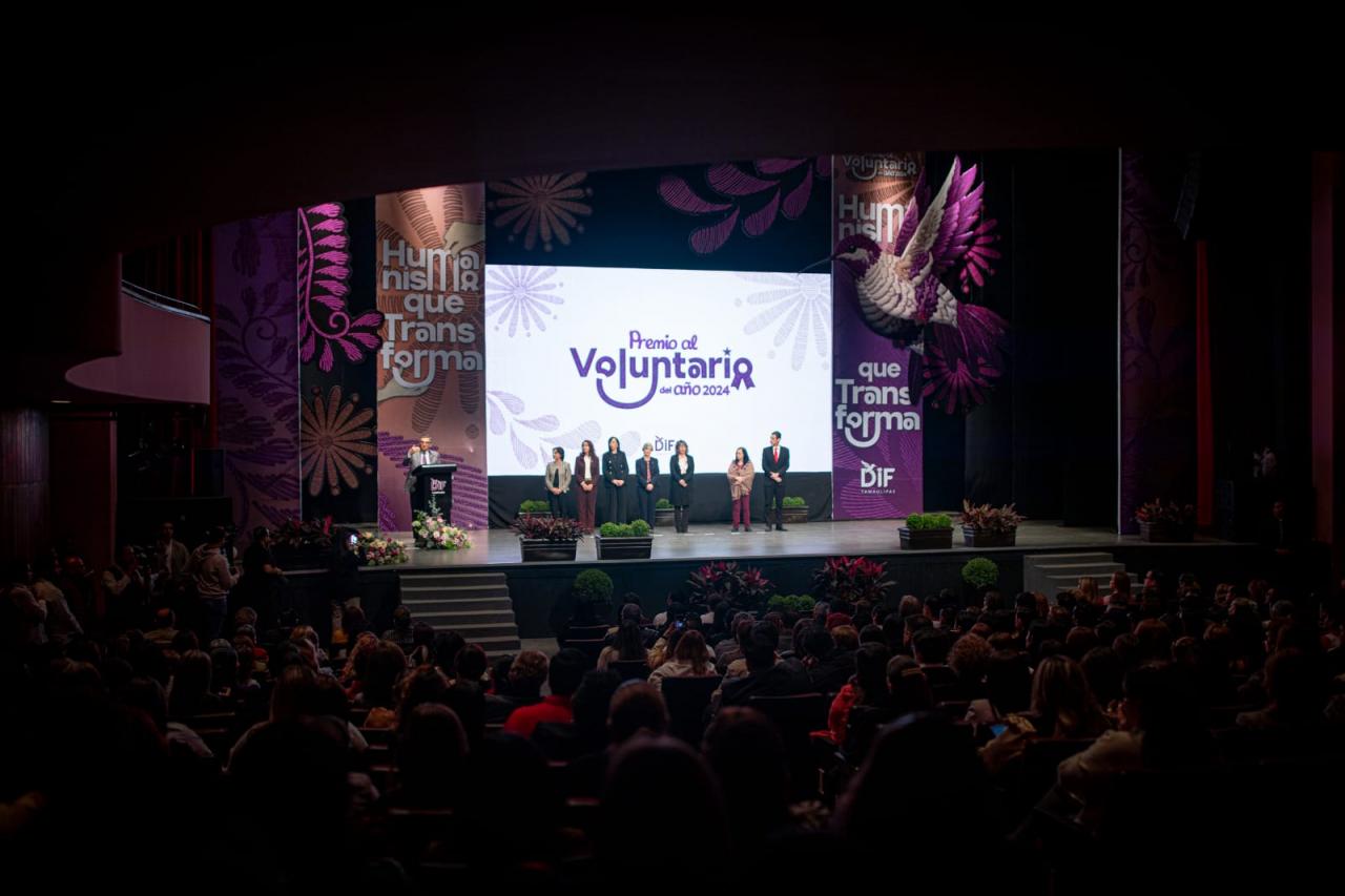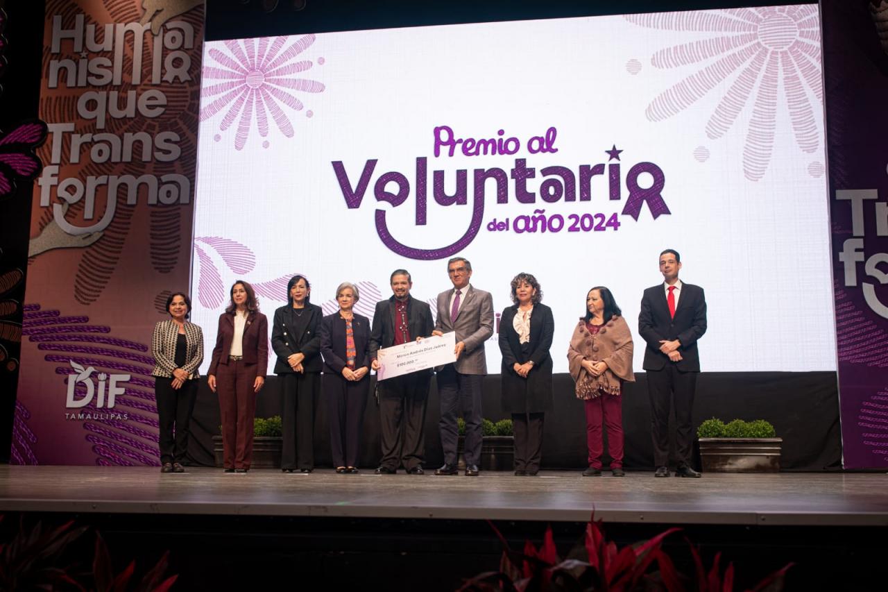 Ciudad Victoria, Tamaulipas. En el marco del Día Internacional de los Voluntarios, el gobernador Américo Villarreal Anaya y la presidenta del Sistema DIF Tamaulipas, la doctora María de Villarreal, hicieron entrega del Premio al Voluntario del Año 2024 en las categorías individual y grupal, en un evento realizado en el Centro Cultural Tamaulipas.