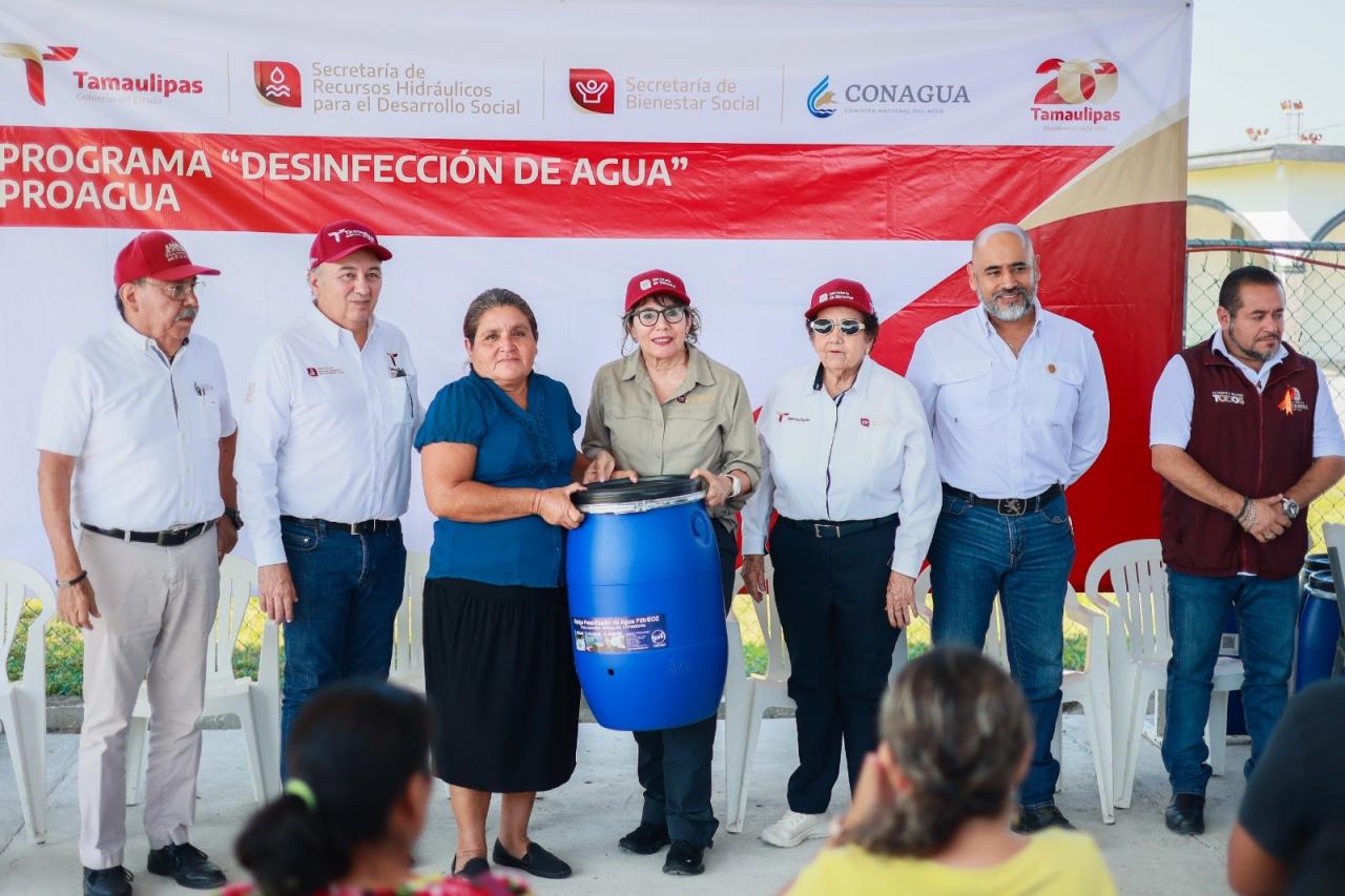 Altamira, Tamaulipas.- La Secretaría de Bienestar Social (SEBIEN) en coordinación con la Secretaría de Recursos Hidráulicos para el Desarrollo Social, entregó 67 dispositivos de desinfección de agua como parte del Programa de Agua Potable, Drenaje y Tratamiento (PROAGUA) Desinfección 2024.