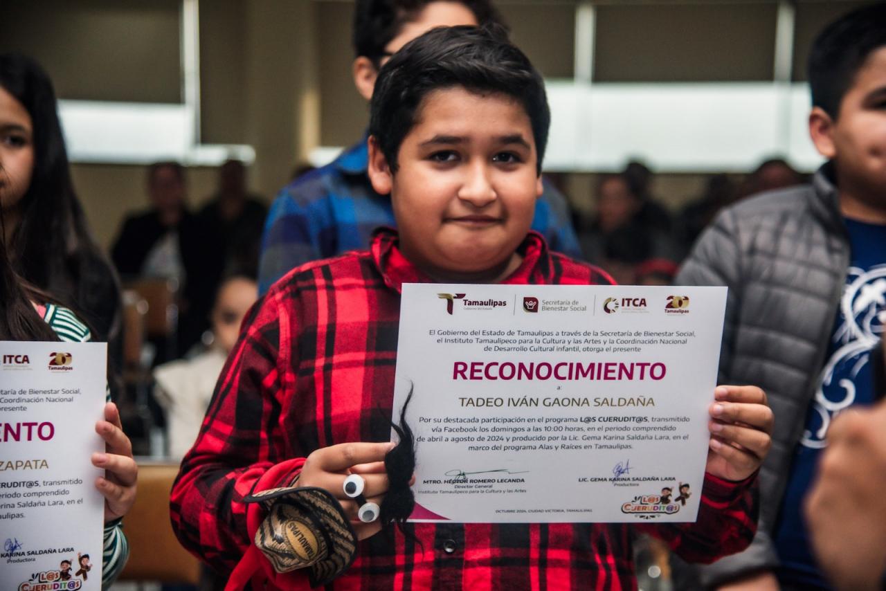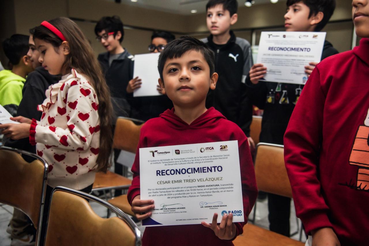 Las y los niños recibieron reconocimientos por su participación en "Radio Aventura" y "Los cueruditos y cueruditas", proyectos auspiciados por el Instituto Tamaulipeco para la Cultura y las Artes (ITCA), el programa nacional Alas y Raíces y una colaboración con Radio Tamaulipas.