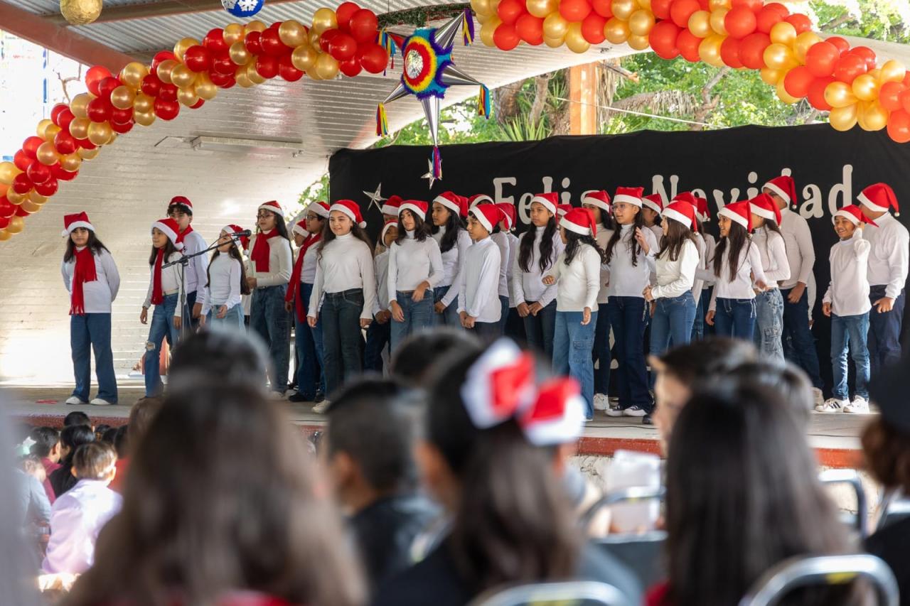 Por parte de la Secretaría de Educación de Tamaulipas se entregó una colección de libros para enriquecer la biblioteca escolar; además, estudiantes del quinto grado de los grupos B, C y D, bajo la batuta del teacher Luis Fernando Blanco, cantaron el villancico “White Christmas”.