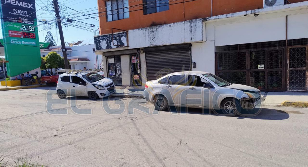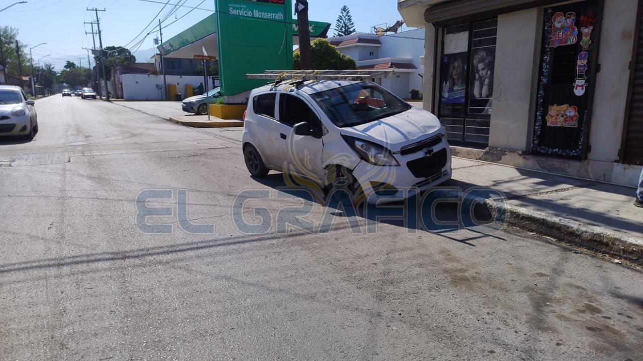 Por exceder el límite de alto, una mujer a bordo de un automóvil ocasionó un accidente en la zona centro que dejó como saldo cuantiosos daños materiales.