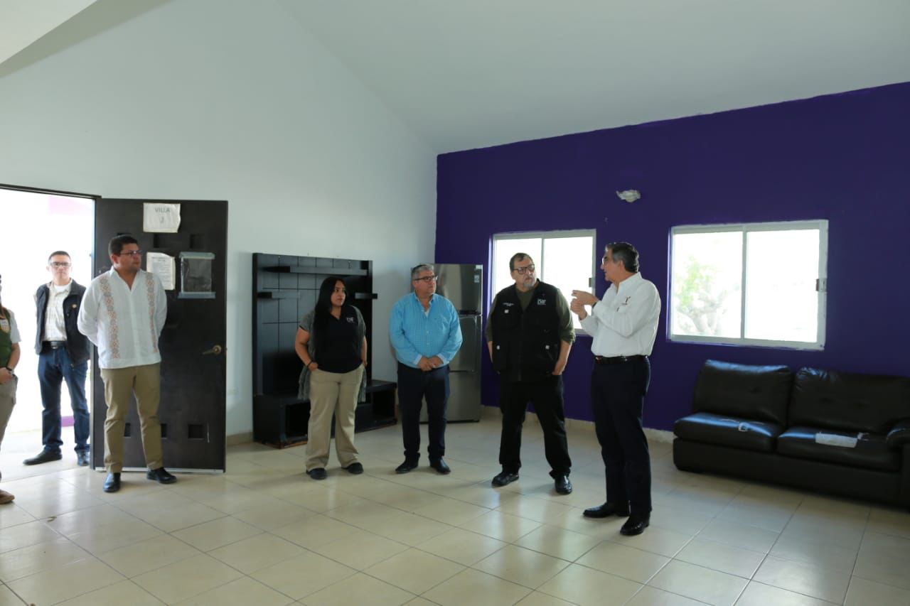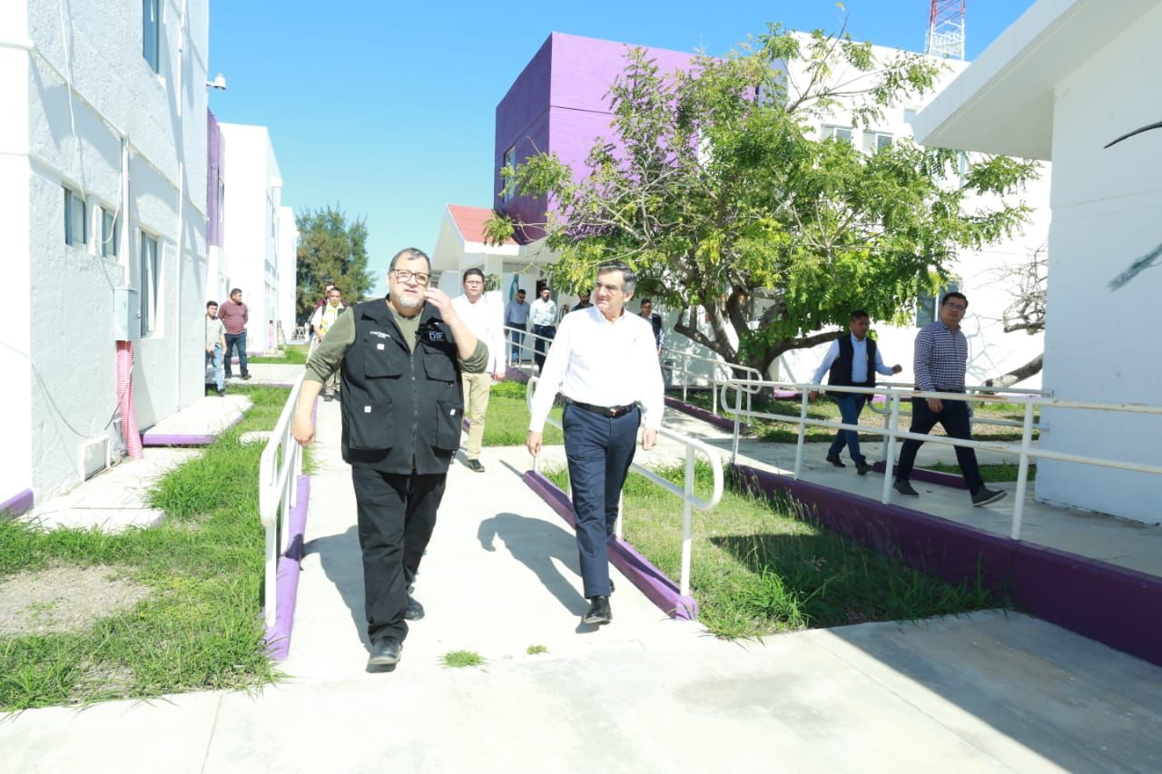El gobernador también supervisó las áreas de cocina, enfermería, atención médica, lavandería, bodega, el salón de enseñanza y el espacio deportivo que incluye una pista de tartán, y consideró que este Centro del DIF Tamaulipas, el cual se encuentra totalmente bardeado y con iluminación suficiente, cuenta con la capacidad operativa y reúne las condiciones para brindar un trato digno y humanitario a quienes lo requieran ante una probable deportación masiva de Estados Unidos.