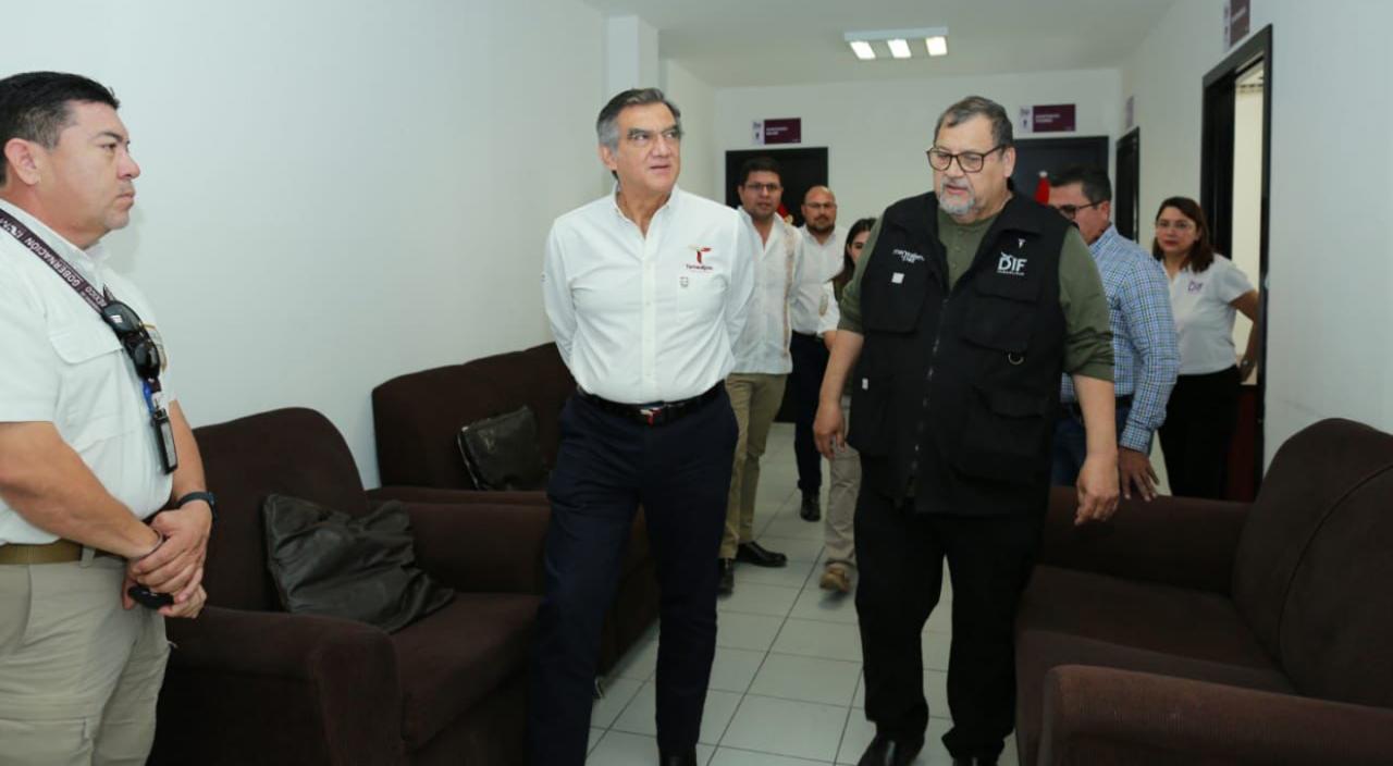 Ciudad Victoria, Tamaulipas.- Con el propósito de estar debidamente preparados ante cualquier contingencia que pudiera presentarse en el tema migratorio, el gobernador Américo Villarreal Anaya y la presidenta del DIF Estatal, María de Villarreal, supervisaron la tarde de este lunes las instalaciones del Centro de Atención y Protección a Niñas, Niños y Adolescentes, el cual podría habilitarse como un albergue para las y los migrantes deportados de Estados Unidos.