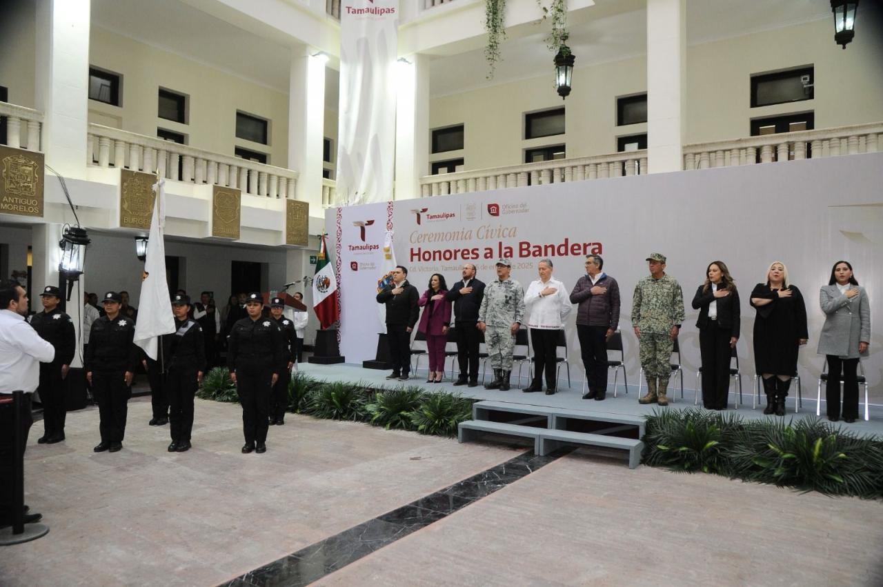 Al presidir la primera ceremonia cívica de honores de 2025, en la explanada central de Palacio de Gobierno, el mandatario tamaulipeco llamó a las y los servidores públicos a trabajar en una agenda humanista, con gran ahínco y dedicación, para seguir transformando a Tamaulipas.