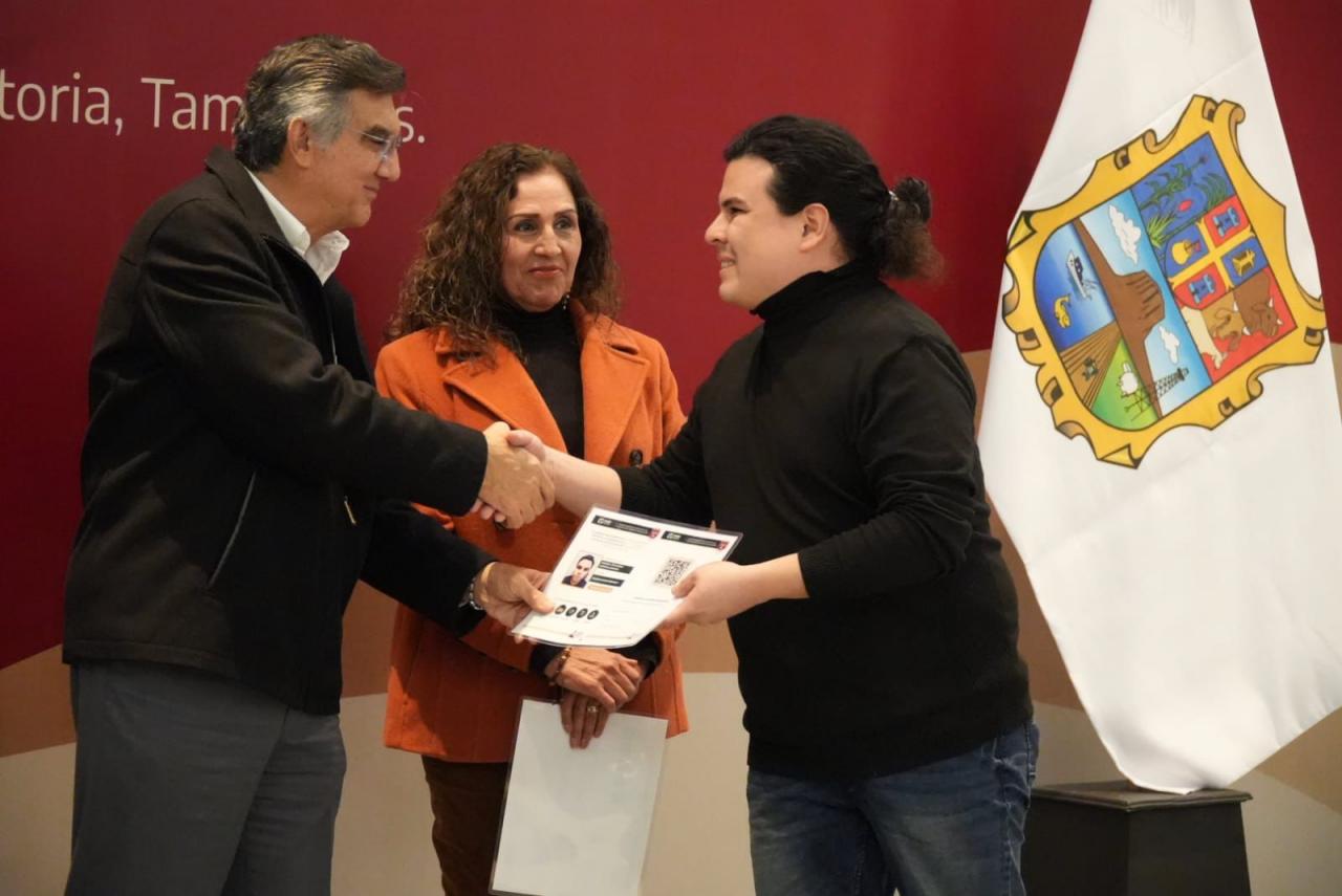 Durante la ceremonia, el gobernador entregó de manera simbólica a seis periodistas las tarjetas de afiliación al IMSS-Bienestar, de un total de 169 expedientes que están en proceso para otorgarles seguridad social.