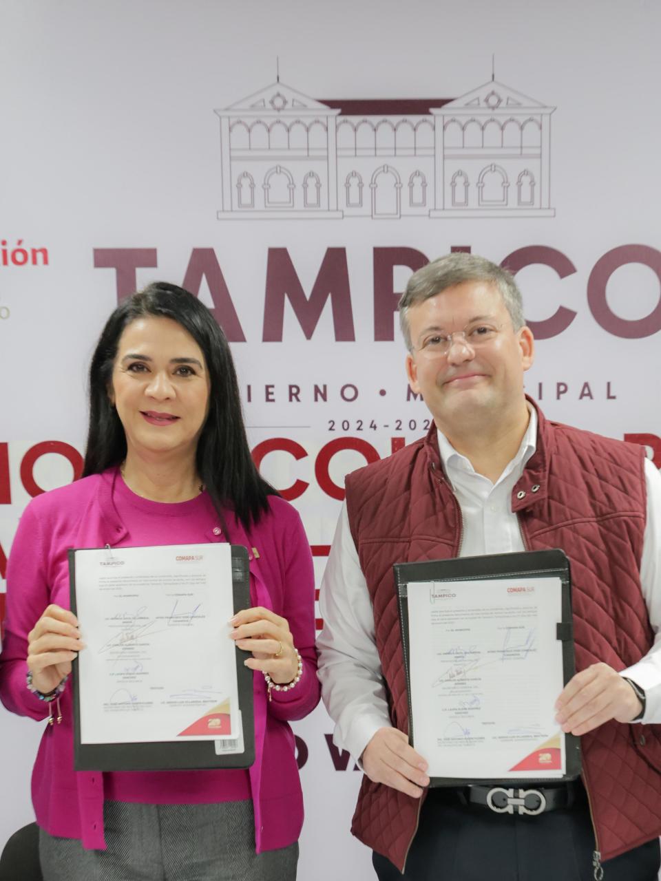 “La firma de este convenio no sólo formaliza el esfuerzo conjunto entre nuestras instituciones, sino que también refuerza nuestro compromiso por servir a Tampico con eficiencia y responsabilidad. Cuando trabajamos en equipo, cuando unimos recursos, capacidades y voluntades, logramos mucho más que sólo cumplir con nuestras obligaciones”, puntualizó.