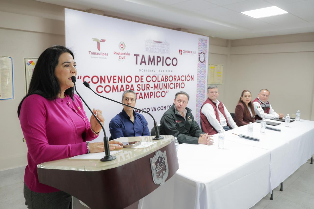 Con el objetivo de fortalecer la capacidad operativa del Heroico Cuerpo de Bomberos de Tampico, la Presidenta municipal Mónica Villarreal Anaya suscribió un convenio de colaboración con la Comisión Municipal de Agua Potable y Alcantarillado de la zona conurbada -COMAPA Sur-, mediante el cual, el organismo operador pondrá a disposición de la corporación cuatro pipas para la atención de siniestros.
