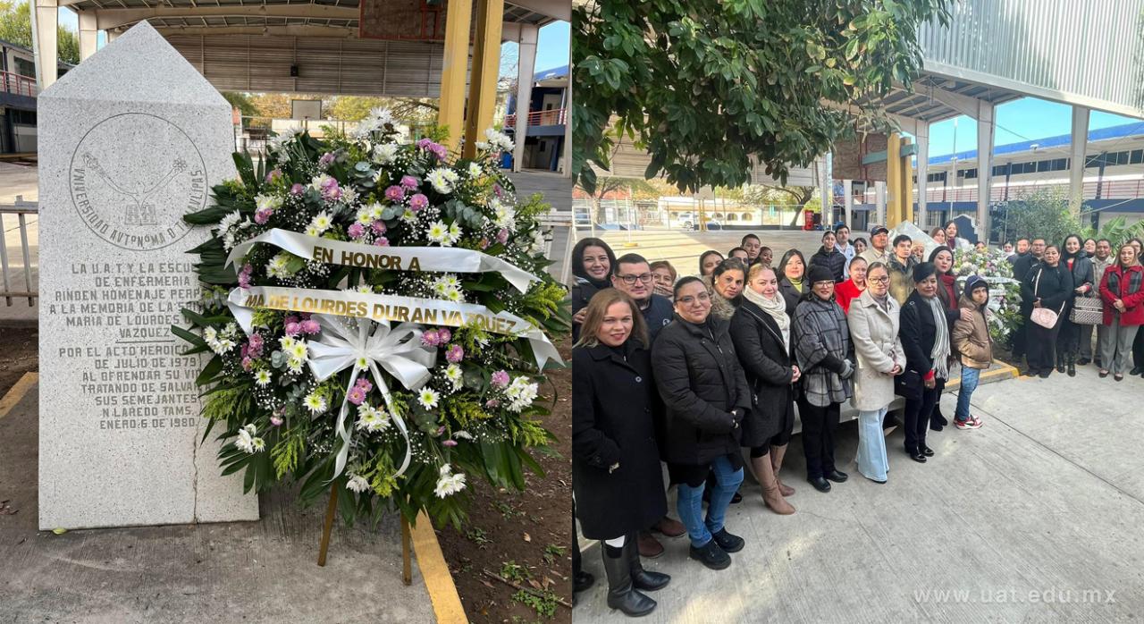 Como cada año, el pasado 7 de enero, la Universidad Autónoma de Tamaulipas (UAT) a través de la Facultad de Enfermería Nuevo Laredo rindió un emotivo homenaje a la enfermera María de Lourdes Durán Vázquez, quien dejó un legado invaluable en la institución y en la comunidad de salud.