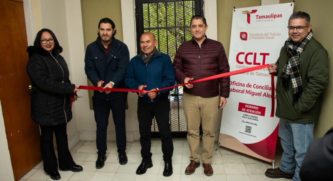 Miguel Alemán, Tamaulipas.- Con la finalidad de acercar la justicia laboral, fue inaugurada la Oficina Regional del Centro de Conciliación Laboral en el municipio de Miguel Alemán, cuya apertura estuvo a cargo de Luis Gerardo Illoldi Reyes, secretario del Trabajo y Previsión Social en Tamaulipas, y del director general del Centro de Conciliación Laboral de Tamaulipas, José Ives Soberón Mejía.