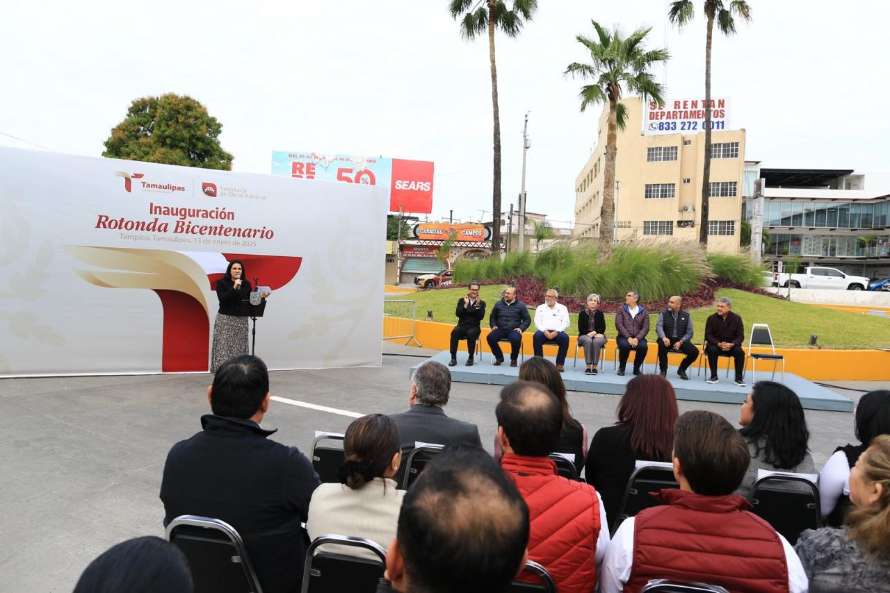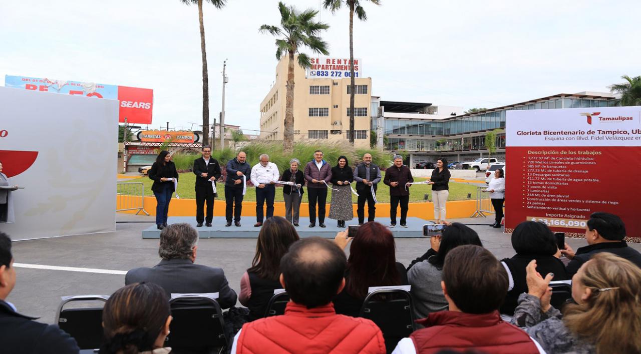 Al inaugurar la Glorieta Bicentenario, ubicada en los bulevares López Mateos y Fidel Velázquez de este puerto de Tampico, el mandatario estatal, quien estuvo acompañado de la presidenta del DIF Estatal, María de Villarreal y la presidenta municipal, Mónica Villarreal Anaya, señaló que, aplicando estos principios, han realizado obras en beneficio de las y los tamaulipecos.