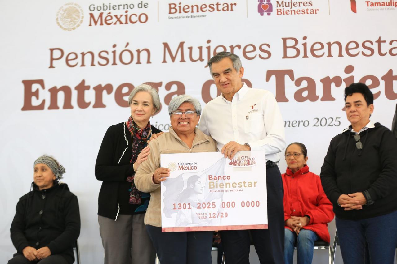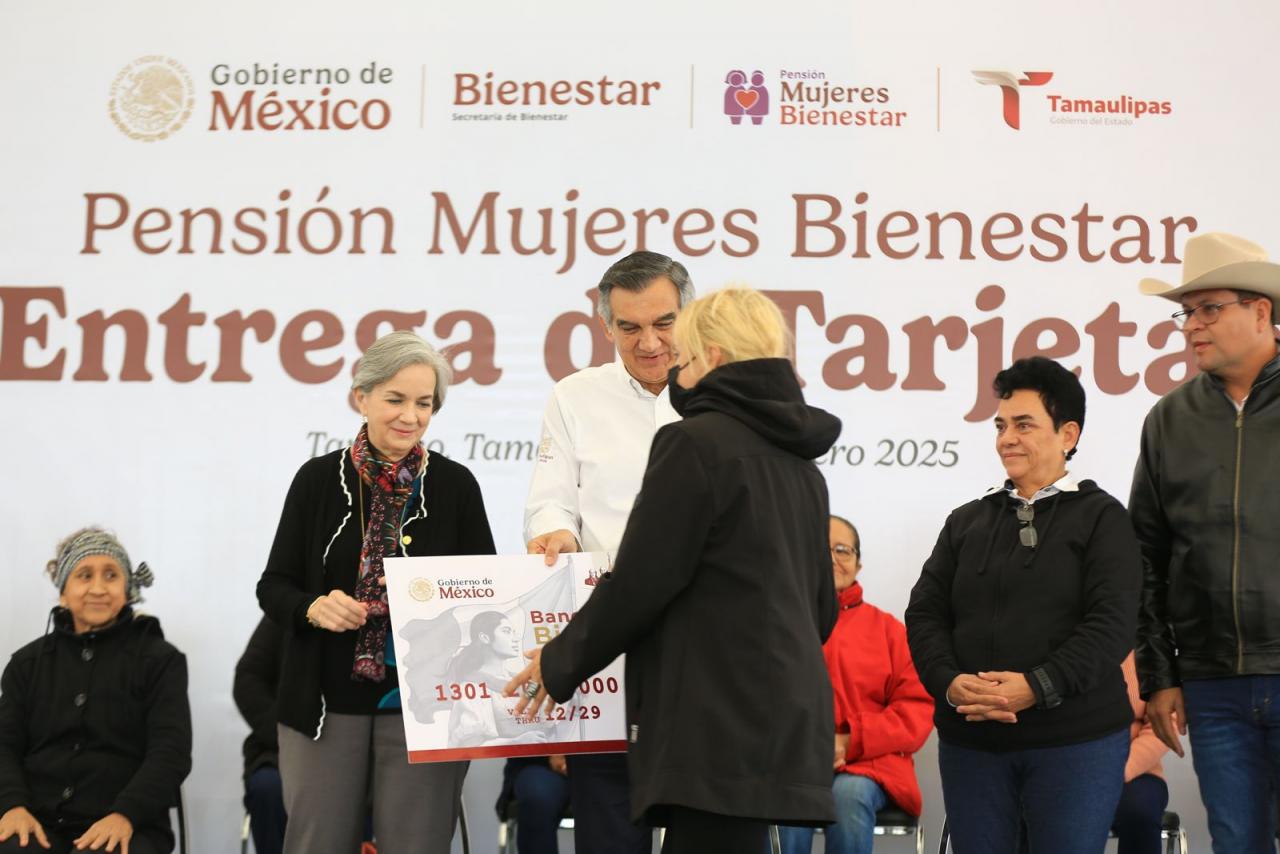 Junto al delegado de Bienestar Federal, Luis Lauro Reyes Rodríguez, el gobernador entregó la tarjeta de la Pensión Mujeres Bienestar a seis representantes de Tampico, Madero y Altamira, y aseguró que este programa es un acto de justicia a las mujeres de más de 60 años por su dedicación al cuidado de sus familias.