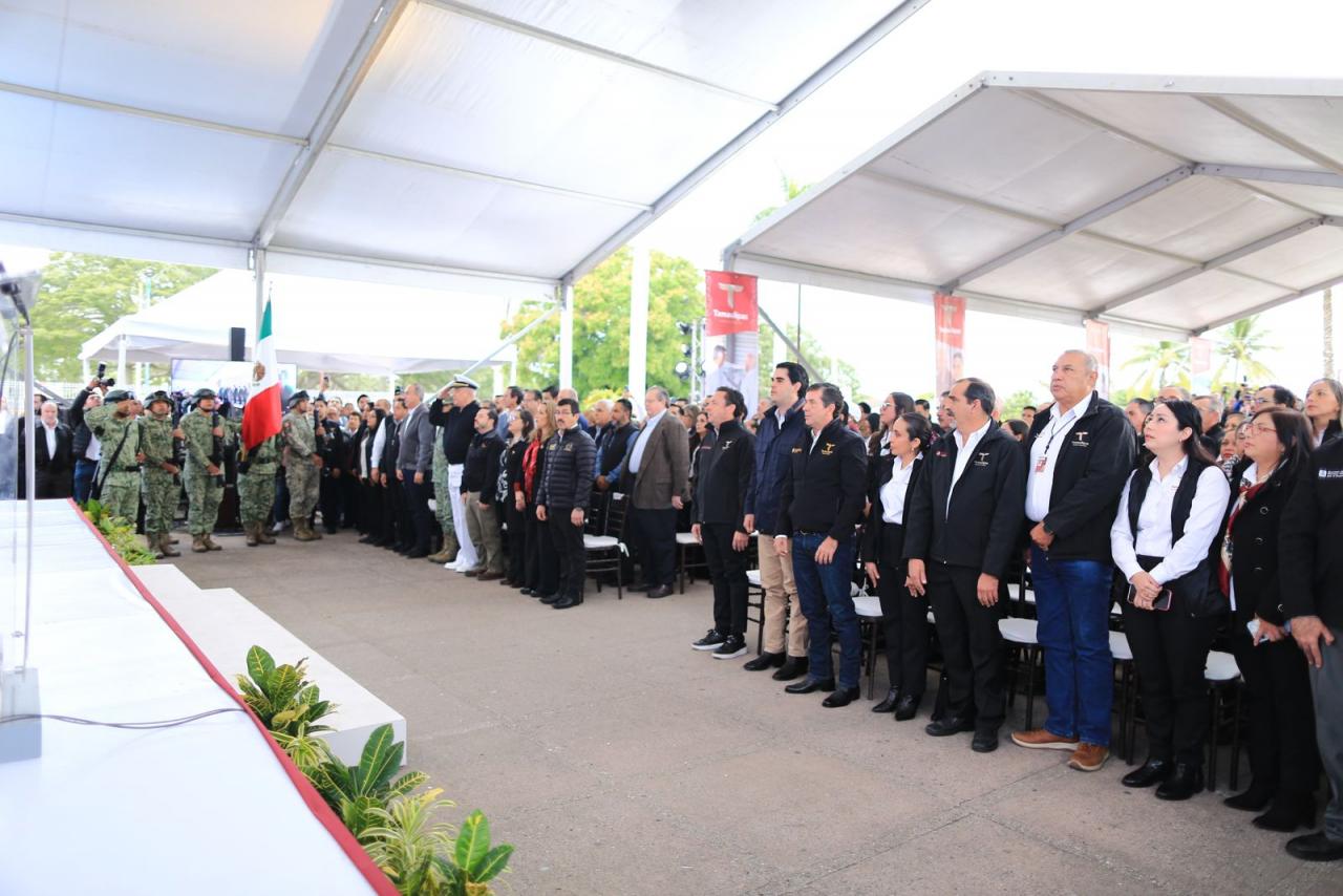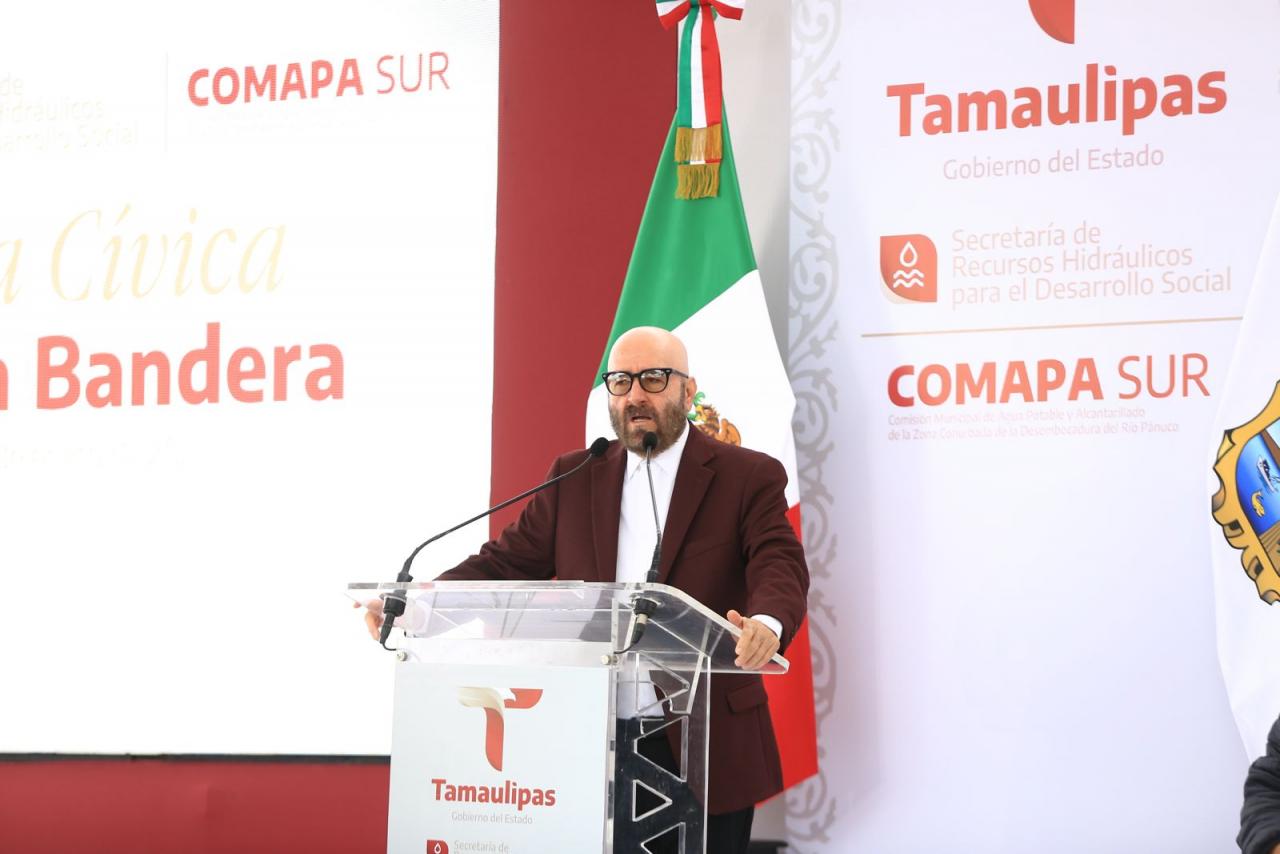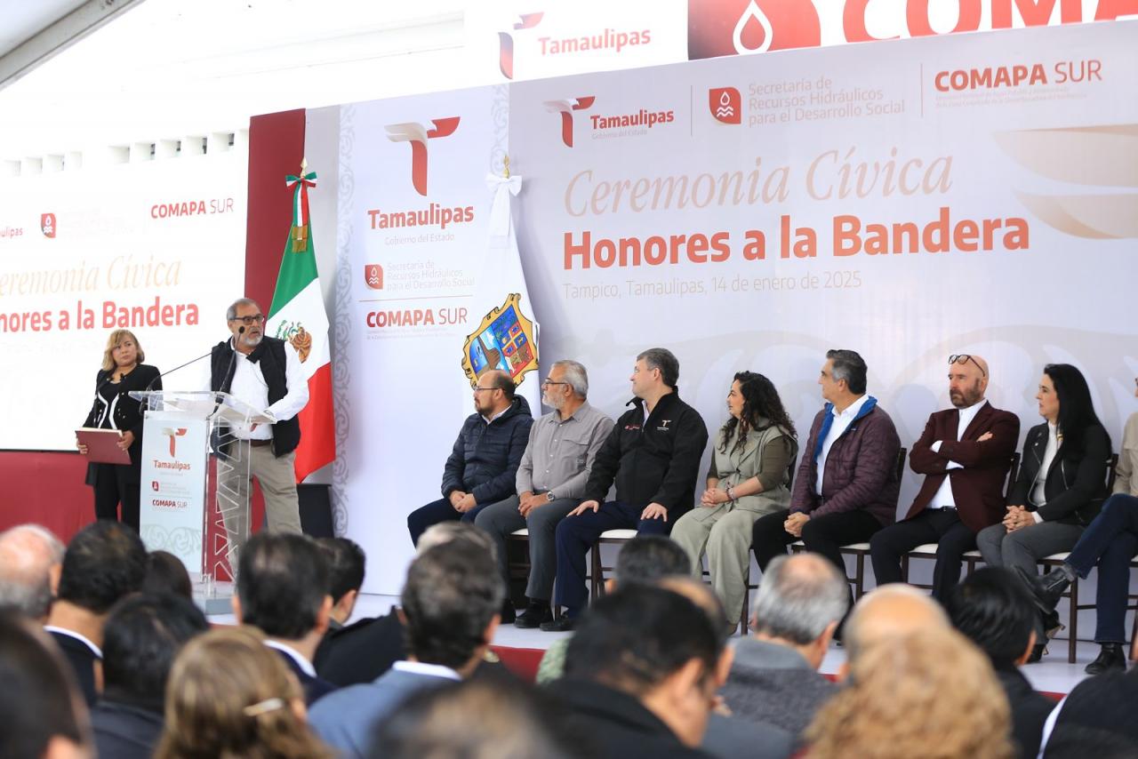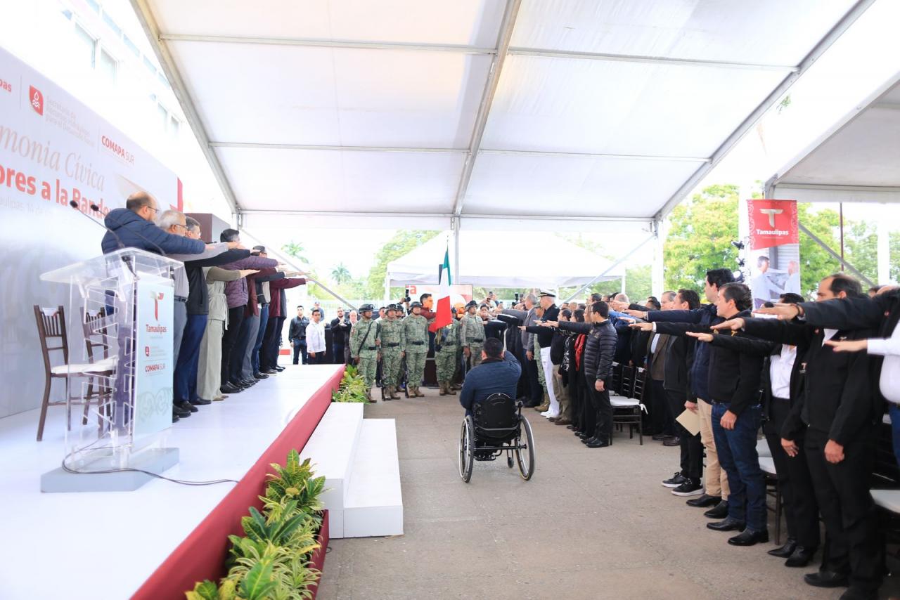 Fue en el marco de la ceremonia cívica de honores celebrada este martes en las instalaciones de la Comapa Sur, donde el gobernador también develó una placa y recibió un reconocimiento del Consejo Ciudadano de Colonos de Tampico, Madero y Altamira por su liderazgo para afrontar y superar la crisis hídrica que se vivió en esta región el año pasado.