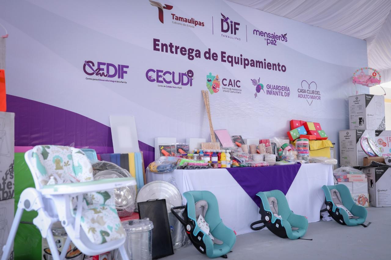 Enseres domésticos, material didáctico y para los talleres de enfermería, cocina, corte y confección, belleza, manualidades, además de mobiliario y equipo, fueron entregados a las y los responsables de operar los programas de asistencia social en los municipios, a fin de fortalecer la atención brindada a las familias y grupos prioritarios de Tamaulipas.
