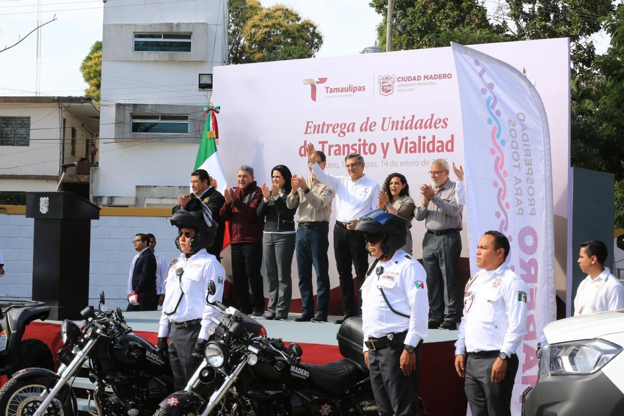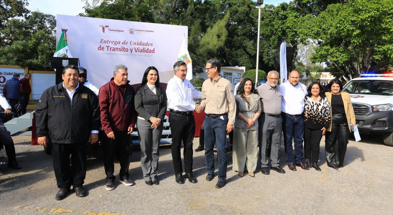 ENTREGA GOBERNADOR PARQUE VEHICULAR A TRÁNSITO EN CIUDAD MADERO