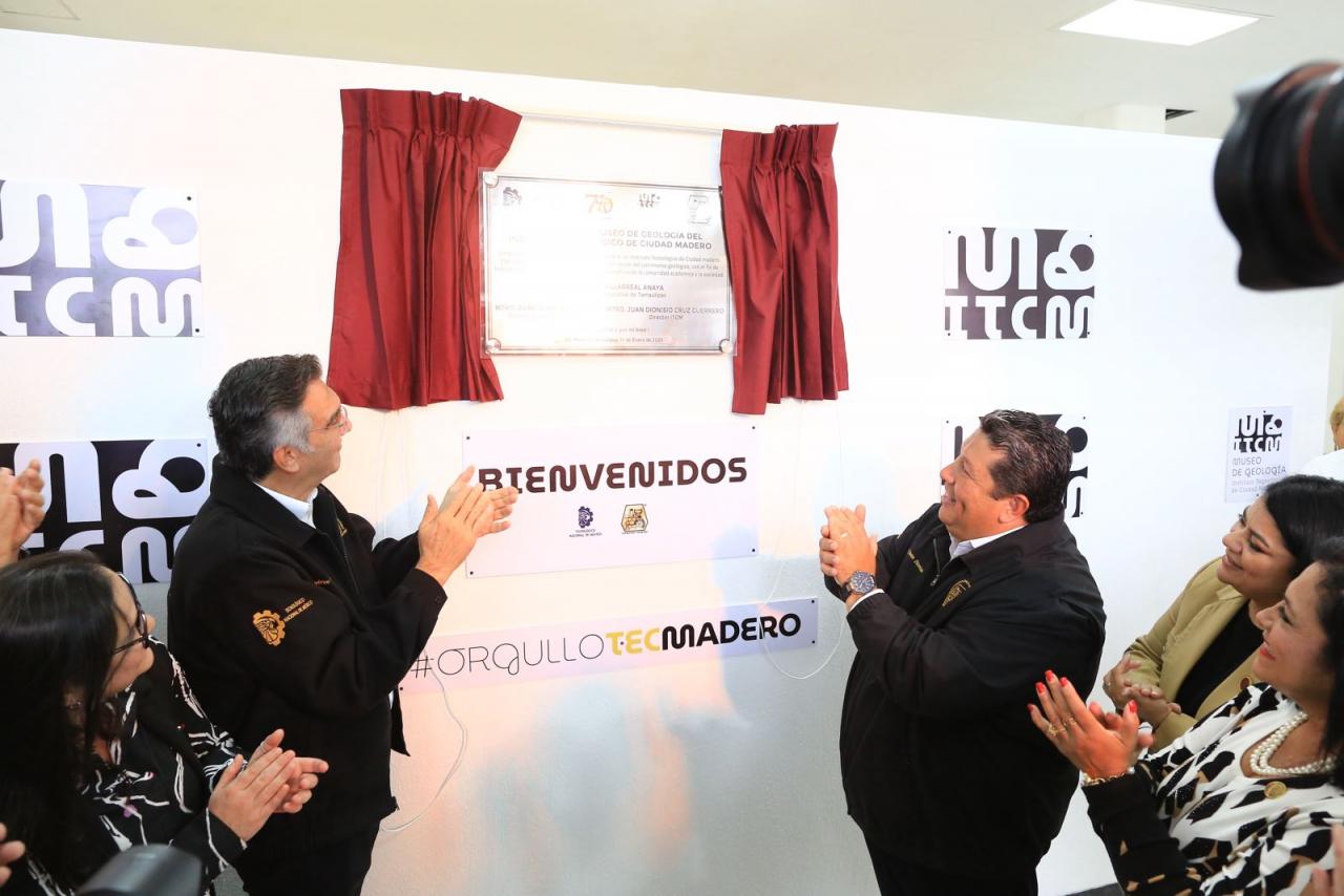 Acompañado por el alcalde Erasmo González Robledo y el director del Tec Madero, Juan Dionisio Cruz Guerrero, el mandatario tamaulipeco cortó el listón inaugural del Museo de Geología, el primero en esta ciudad y apenas el cuarto de su especialidad en todo el país.