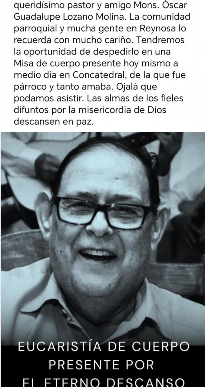 Consternación derivó la noticia del sensible deceso del Padre Oscar Guadalupe Lozano Molina, que por espacio de varios años fungió como párroco de la Iglesia de Nuestra Señora de Guadalupe (Hoy Concatedral).