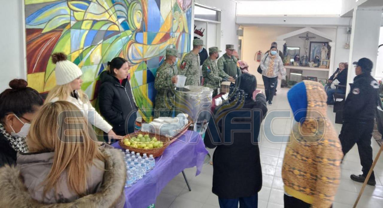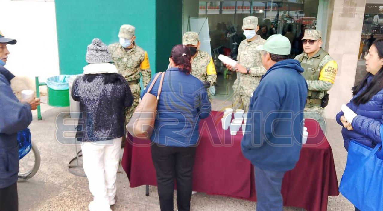 El personal militar acudió al Hospital del IMSS y al Hospital Civil de Ciudad Victoria, donde distribuyó café caliente y pan a pacientes, familiares y personal médico, beneficiando a un total de 210 personas.