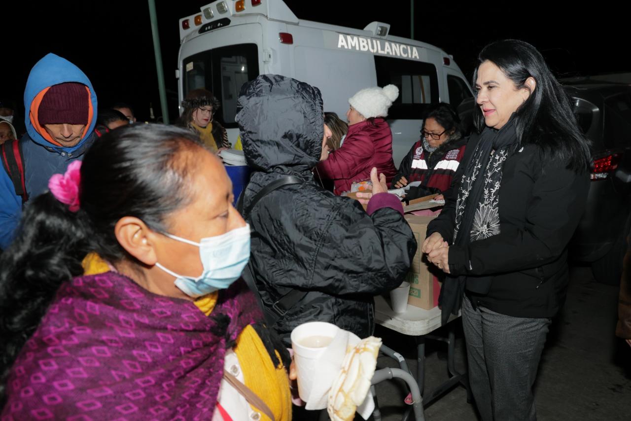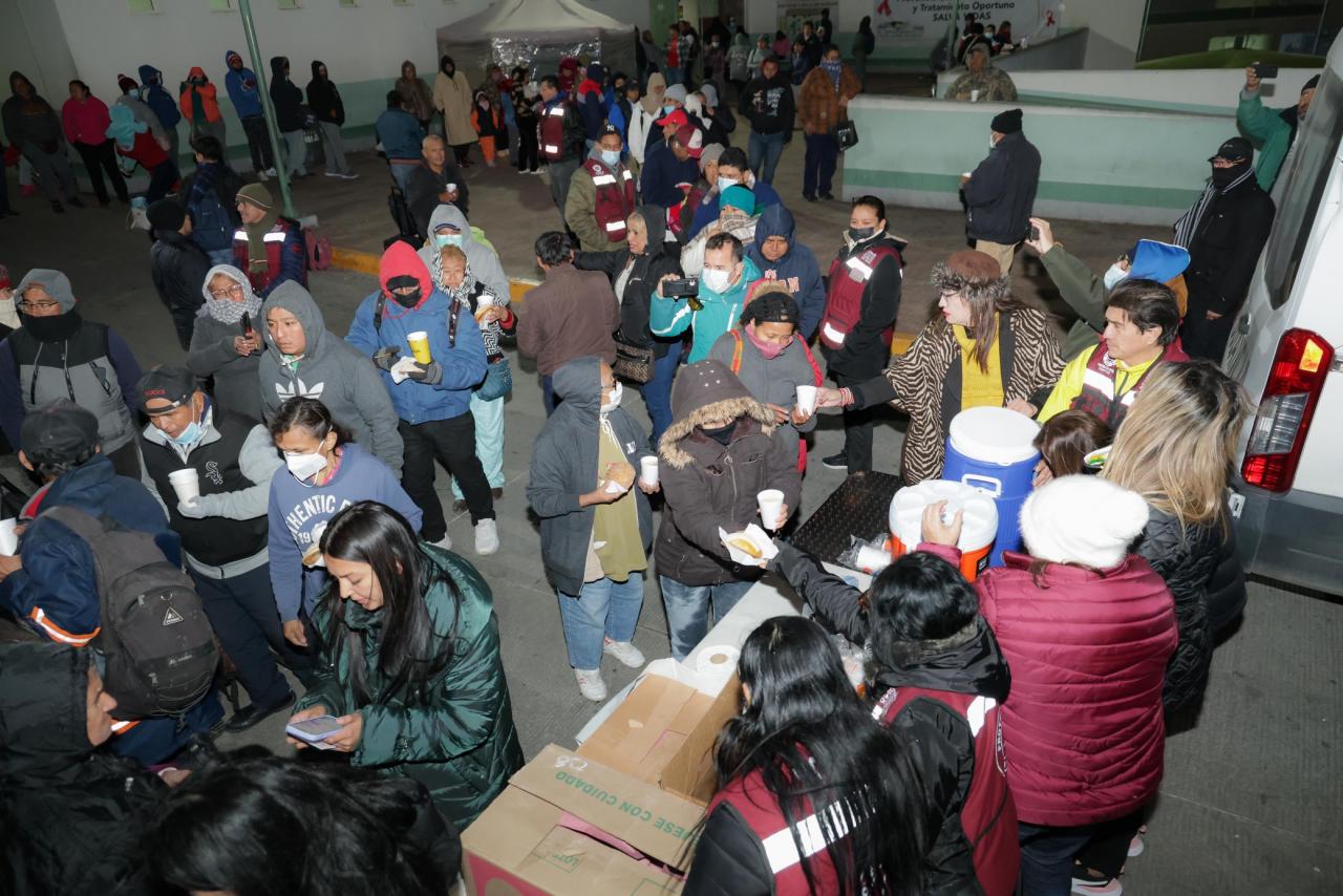 “Estamos aquí siendo testimonio de ese gobierno humano, cercano y sensible; trayendo un poco de compañía, además de café, chocolate, pan de dulce, cobijas, y ropa de invierno, para todas las personas que tienen a sus familiares hospitalizados; queremos que su espera sea más cálida, tomando en cuenta las bajas temperaturas que se resienten", expresó.