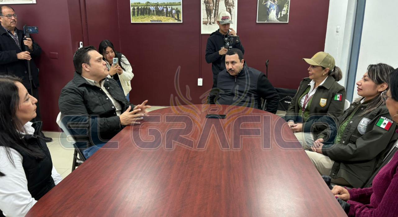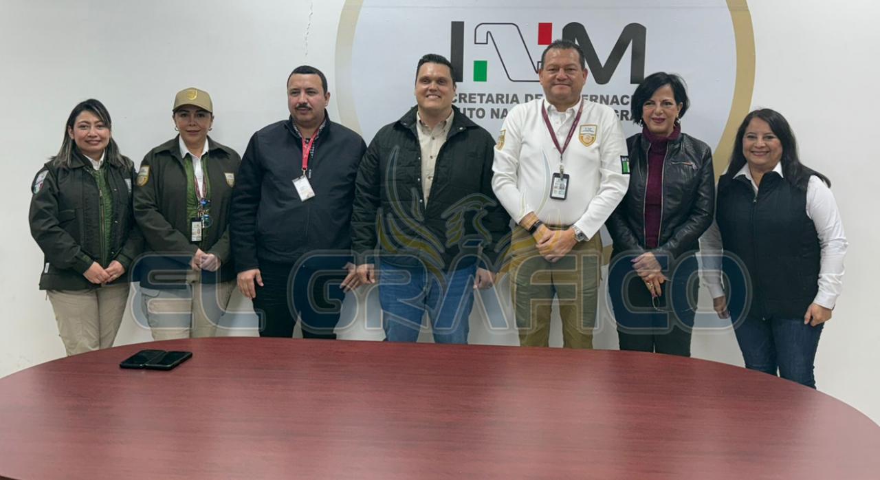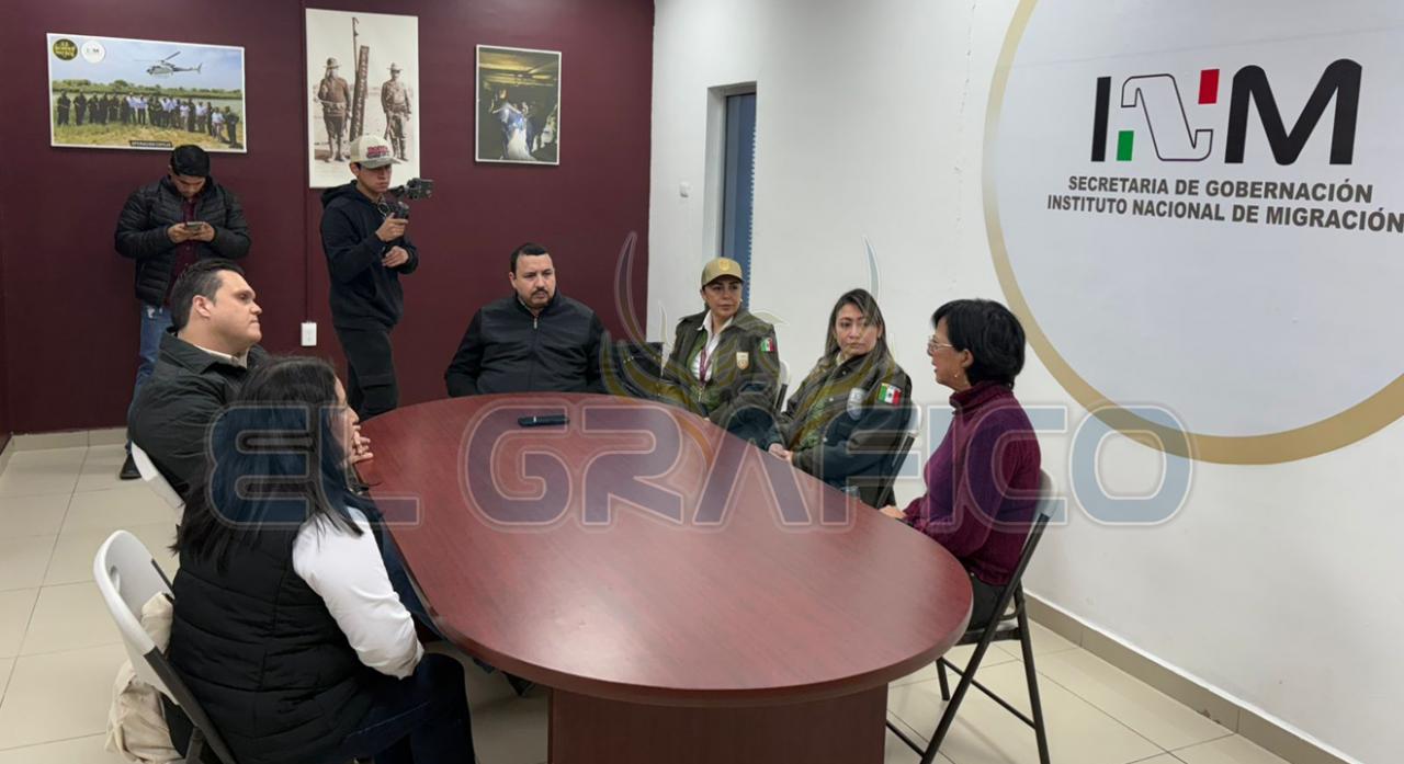 La reunión del Diputado Presidente de la JUGOB y las diputadas locales con las autoridades del INM, estuvo presente el titular de la Oficina de repatriación en Tamaulipas, Segismundo Doguin Martínez, la representante local del INM Karen Santibáñez Arias, la jefa de repatriación Fabiola Chávez Barbosa y Jorge Iván García Rivera, delegado regional del Instituto Tamaulipeco para los Migrantes en representación del Director Juan José Rodríguez Alvarado.