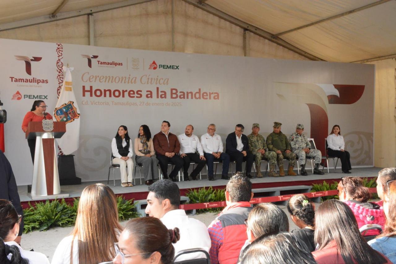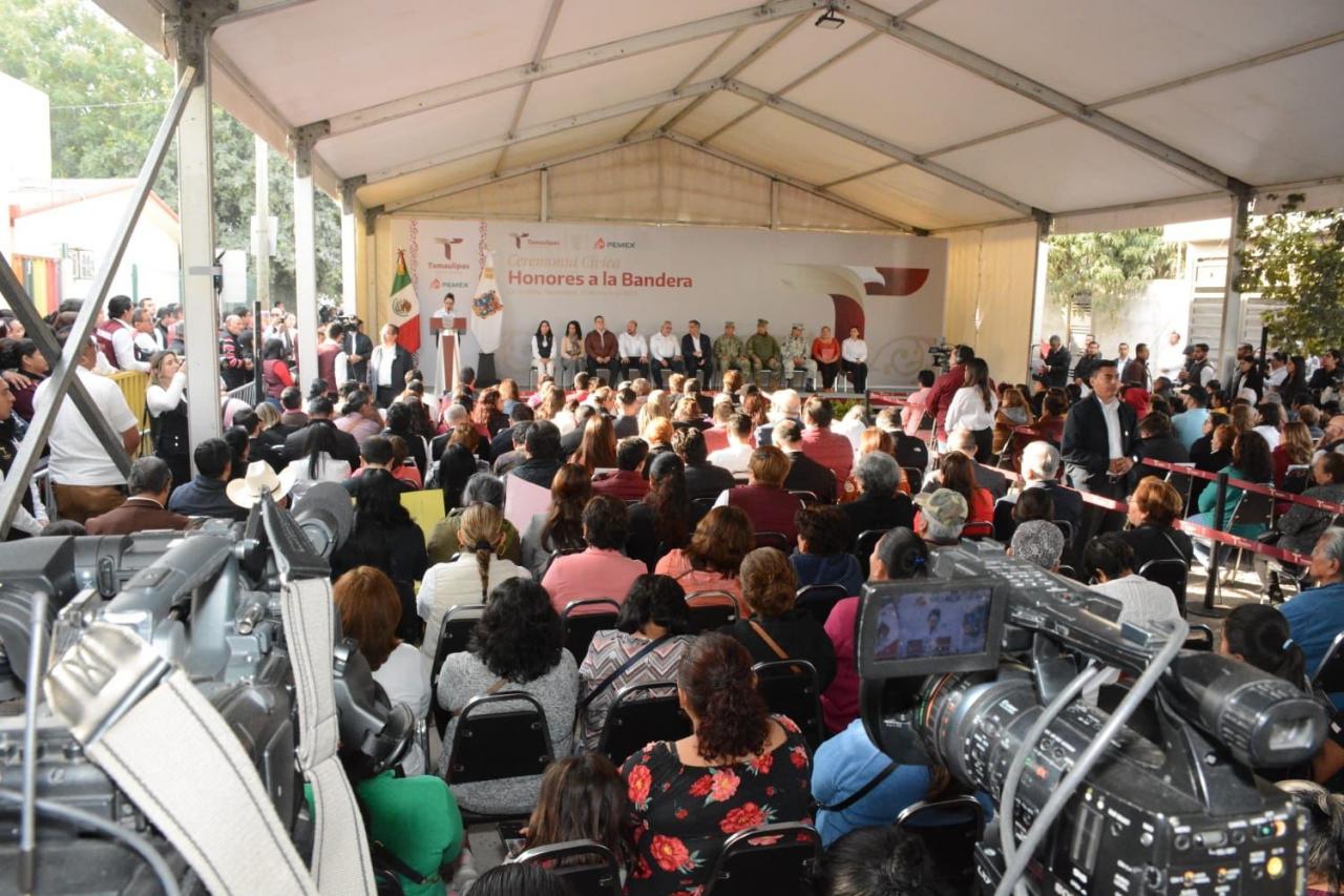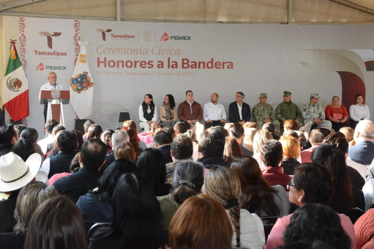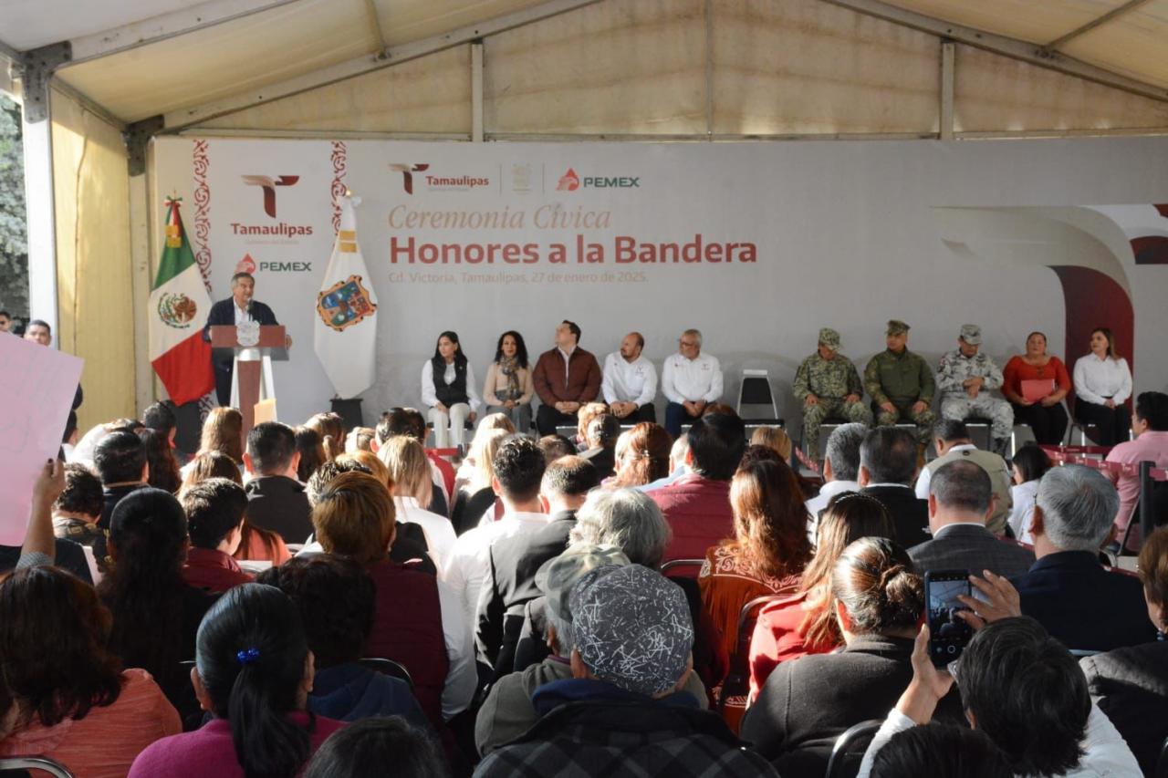 Durante la ceremonia cívica de honores, en el fraccionamiento Luis Quintero de esta capital, el gobernador afirmó que esta acción se suma a las tareas emprendidas por el Gobierno del Estado en Ciudad Victoria para mejorar los servicios públicos, la limpieza, el abastecimiento de agua y los servicios de transporte público.