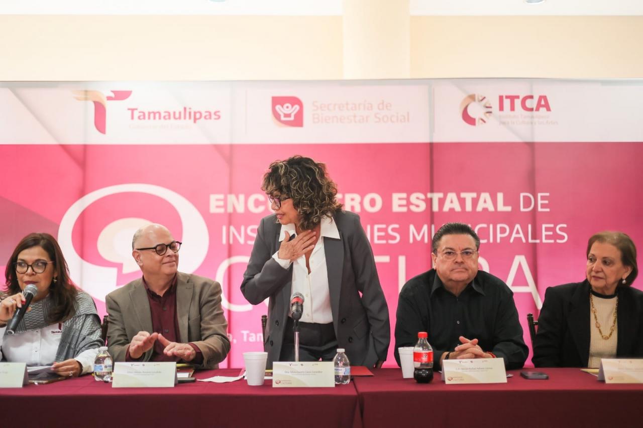 Durante su intervención, la secretaria de Bienestar Social de Tamaulipas, Silvia Casas González destacó la importancia de trabajar en coordinación con los municipios para impulsar estrategias que fomenten el desarrollo cultural en Tamaulipas, tal como lo ha encomendado el gobernador, Américo Villarreal Anaya.