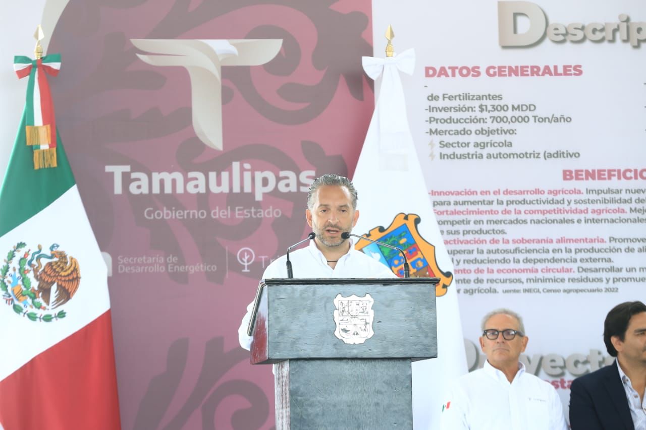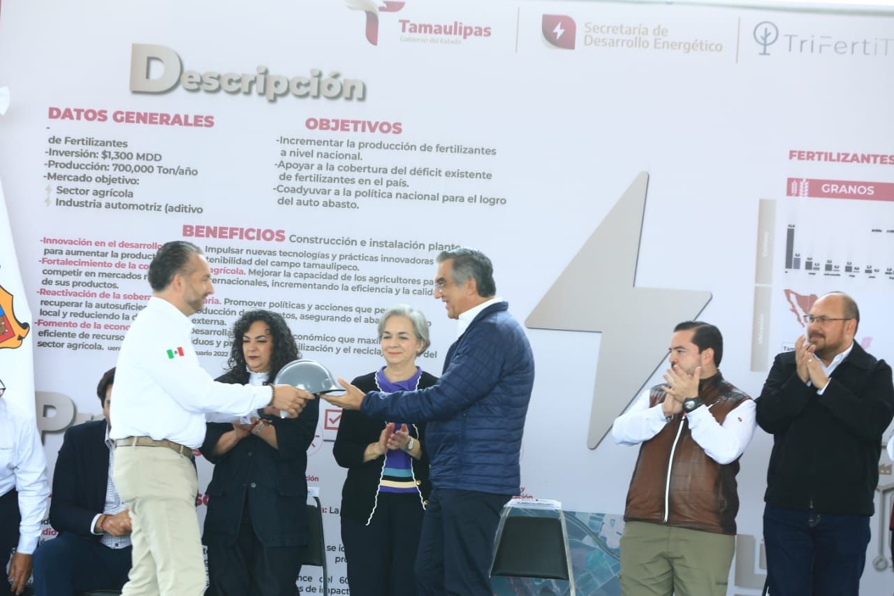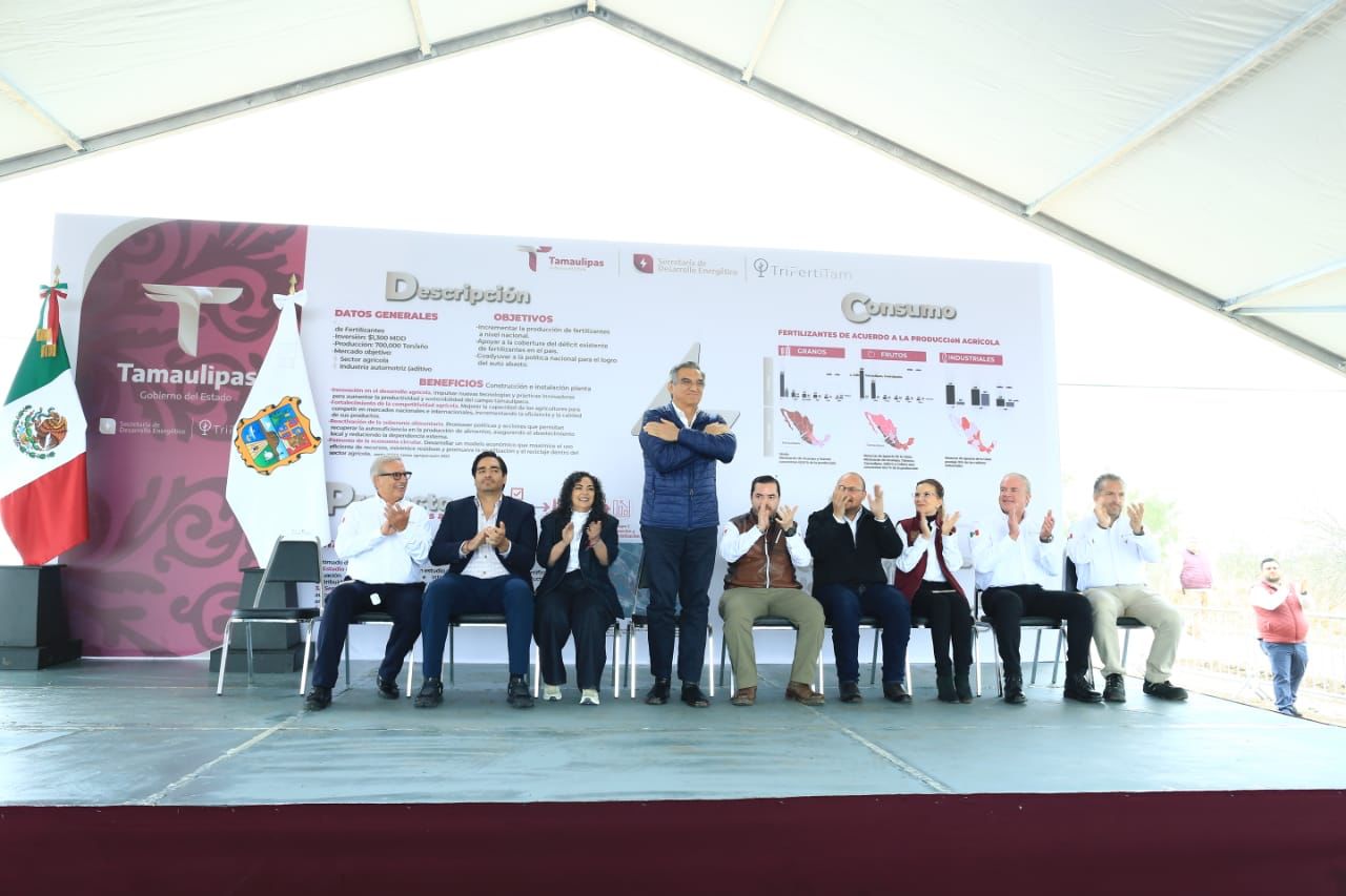 Por su parte, José Ramón Silva Arizabalo, secretario de Energía, aseguró que Tamaulipas contribuirá desde el sector energético impulsando la agricultura con la disponibilidad de fertilizantes de alta calidad y a precios competitivos que permitirán a nuestros agricultores mejorar la productividad y el rendimiento de sus cultivos.