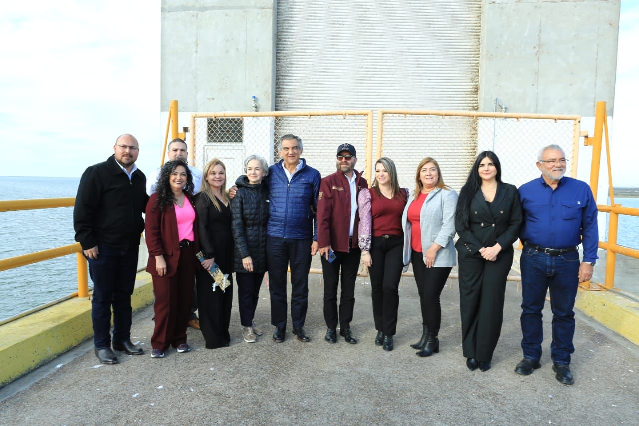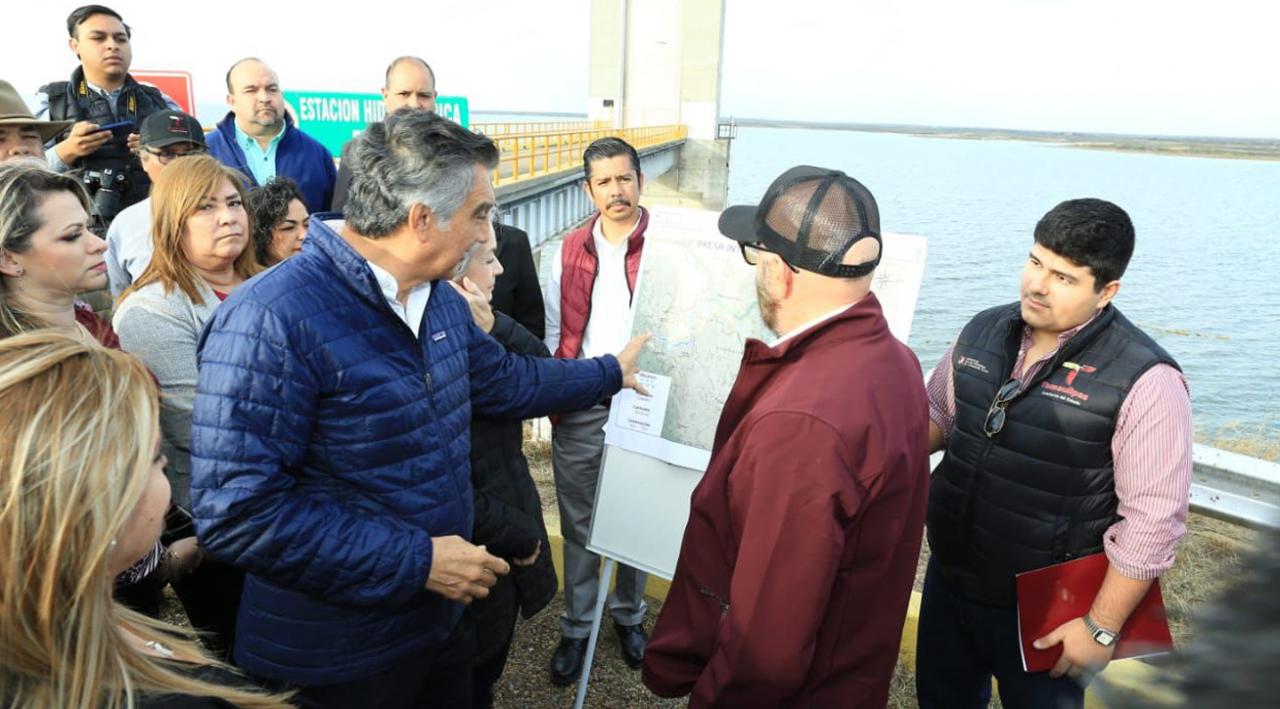 En su visita a la presa Falcón, el gobernador estuvo acompañado por el secretario general de Gobierno, Héctor Joel Villegas; la senadora Olga Sosa Ruiz; el secretario de Obras Públicas, Pedro Cepeda Anaya, así como presidentas municipales de los municipios de La Ribereña, gerentes de organismos operadores del agua y representantes de usuarios de Distritos de Riego.